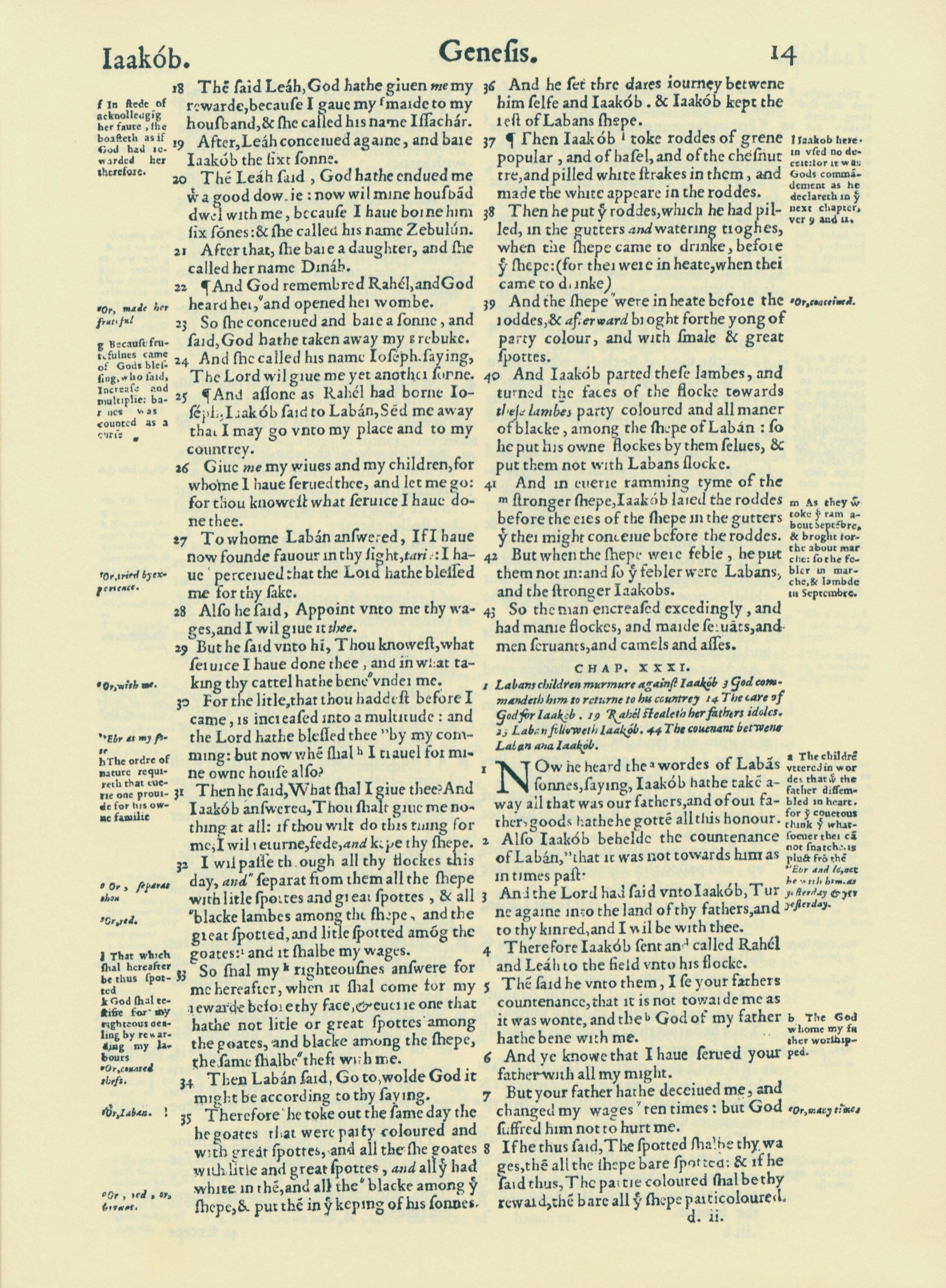 1560年THE BIBLE AND HOLY SCRIPTURES 創世記 30 章 18 節到 31 章 8 節