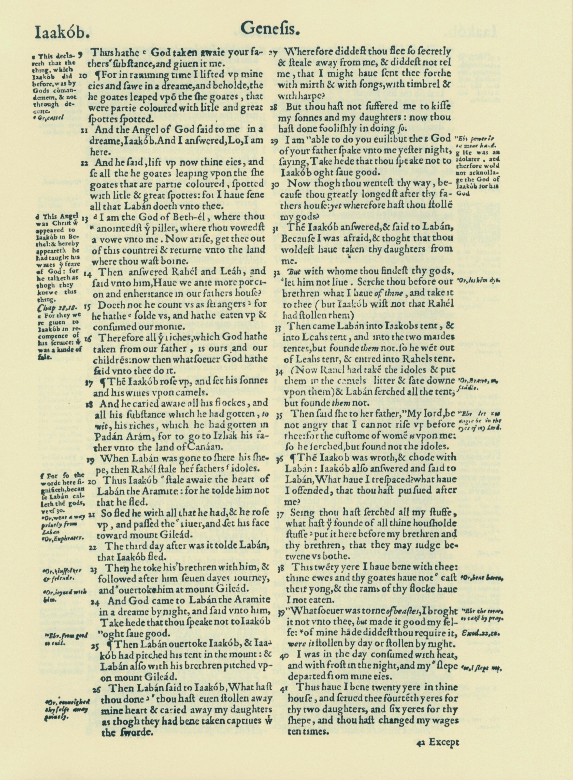 1560年THE BIBLE AND HOLY SCRIPTURES 創世記 31 章 9 節到 31 章 41 節