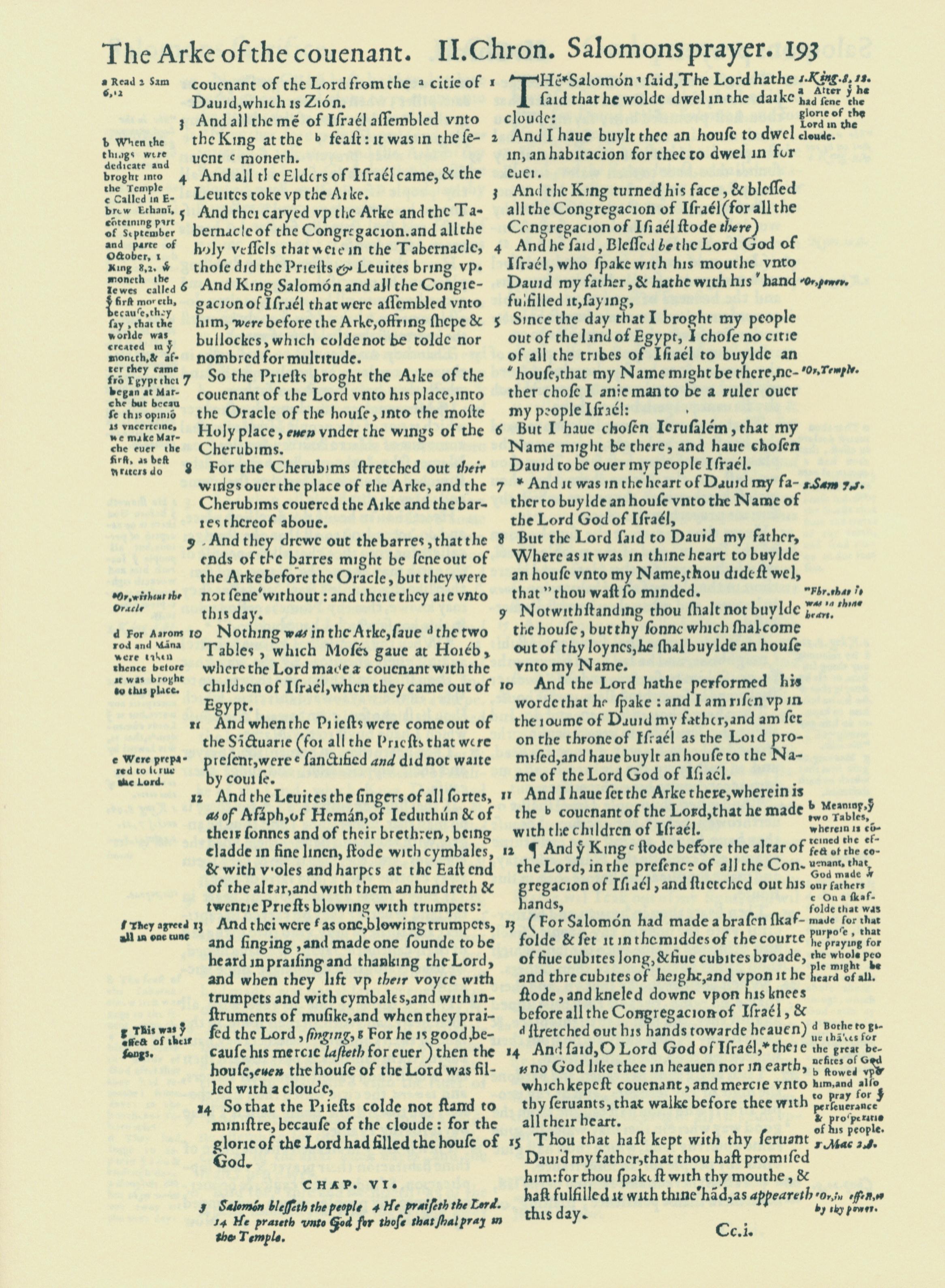 1560年THE BIBLE AND HOLY SCRIPTURES 歷代志下 5 章 3 節到 6 章 15 節