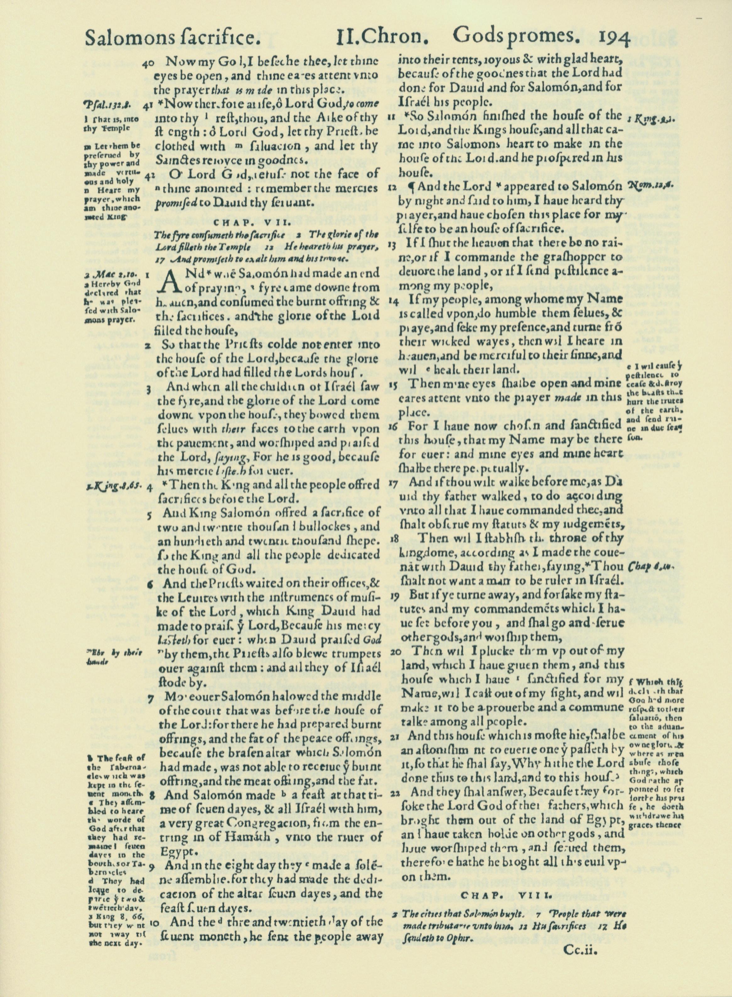 1560年THE BIBLE AND HOLY SCRIPTURES 歷代志下 6 章 40 節到 7 章 22 節