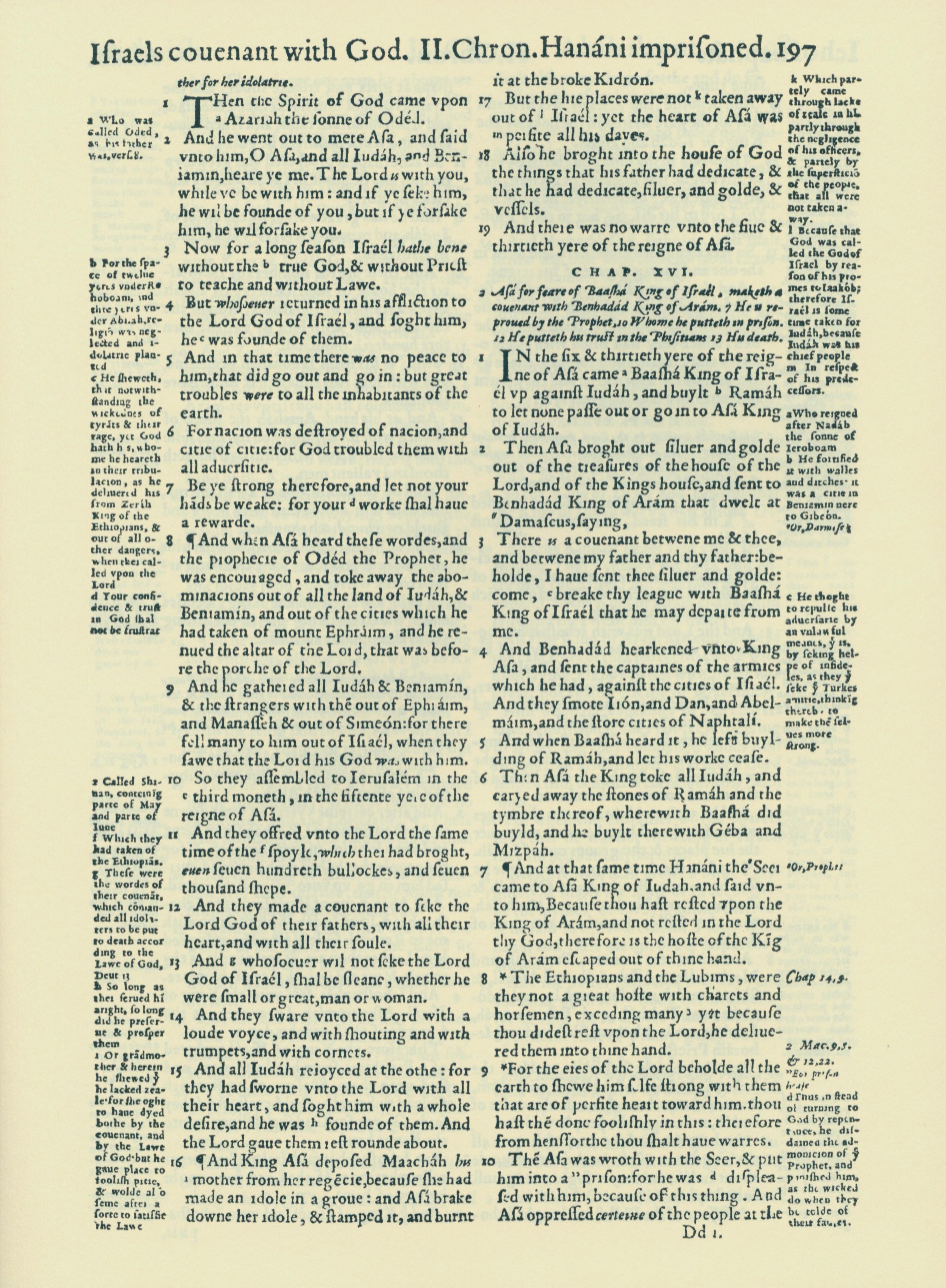 1560年THE BIBLE AND HOLY SCRIPTURES 歷代志下 15 章 1 節到 16 章 10 節