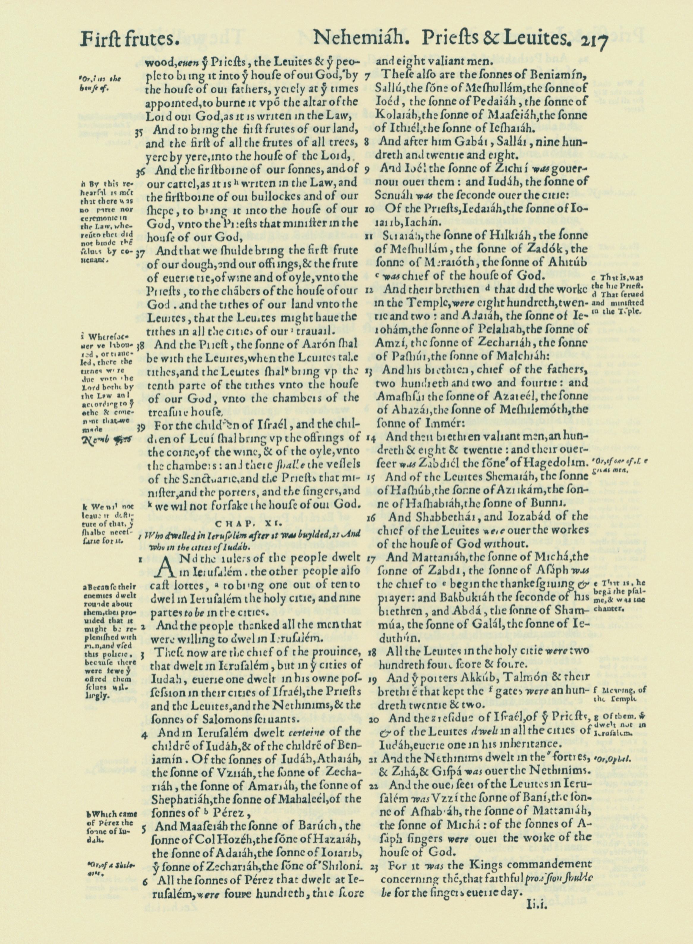 1560年THE BIBLE AND HOLY SCRIPTURES 尼希米記 10 章 34 節到 11 章 23 節
