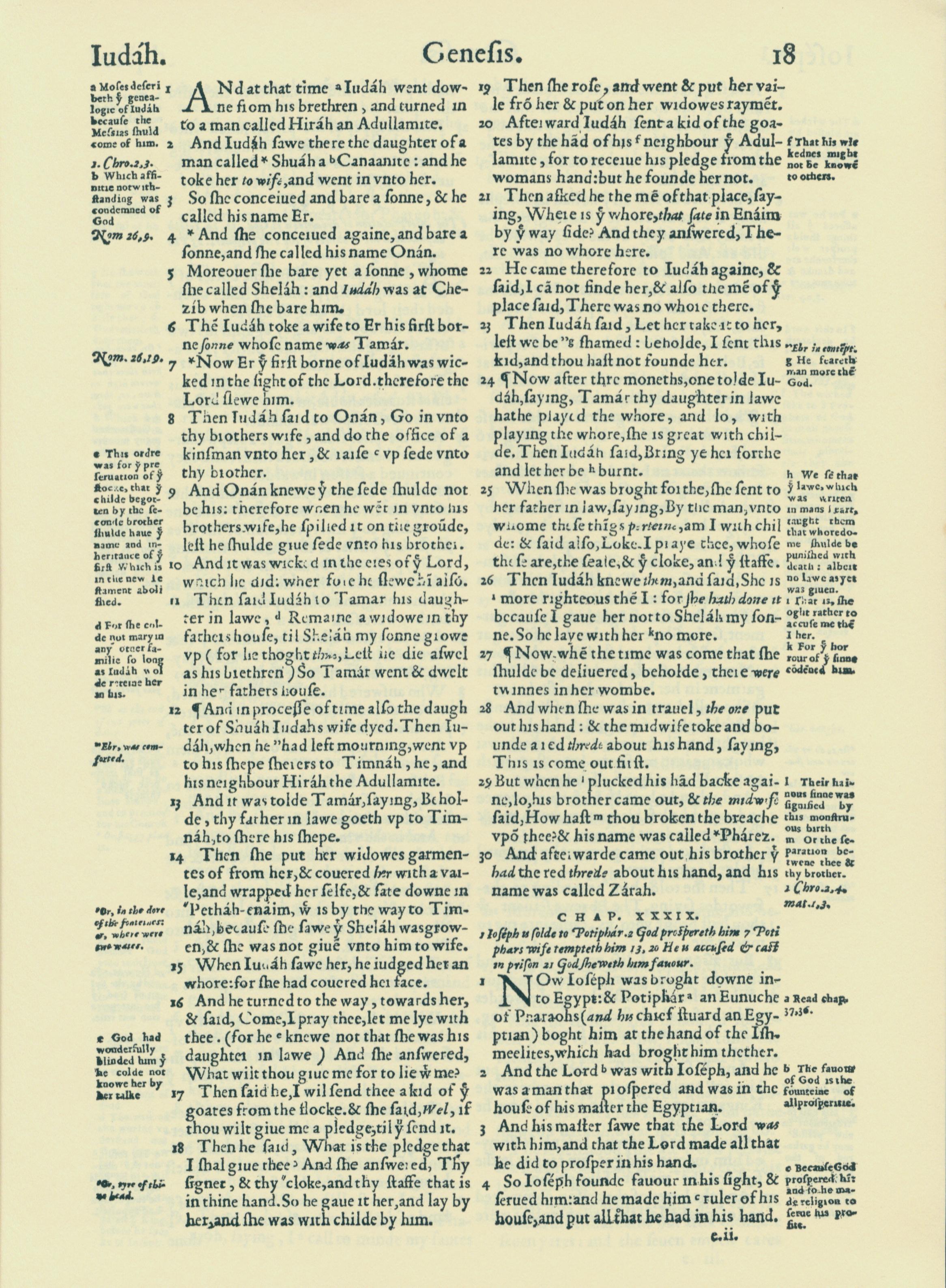 1560年THE BIBLE AND HOLY SCRIPTURES 創世記 38 章 1 節到 39 章 4 節