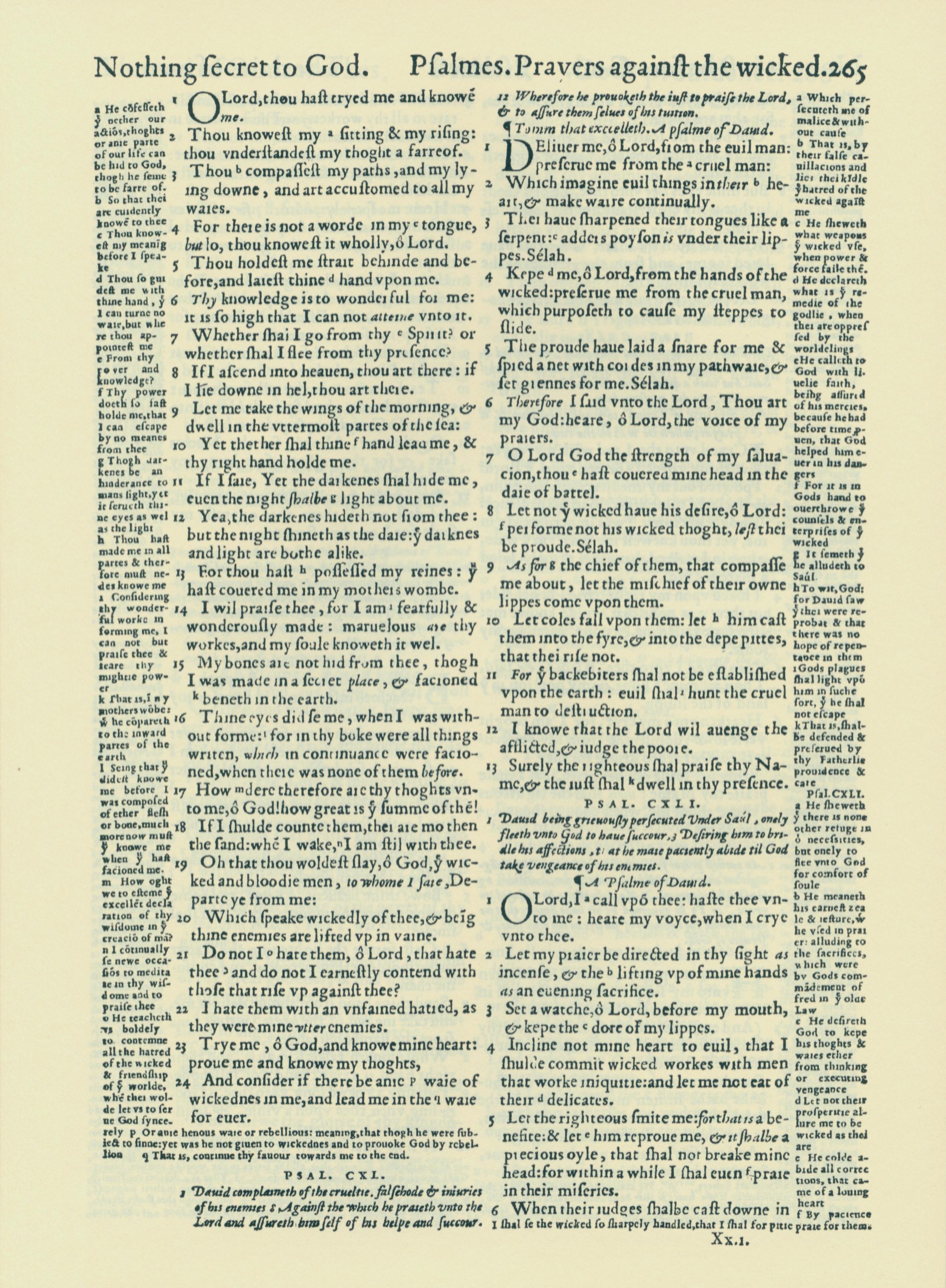 1560年THE BIBLE AND HOLY SCRIPTURES 詩篇 139 章 1 節到 141 章 6 節