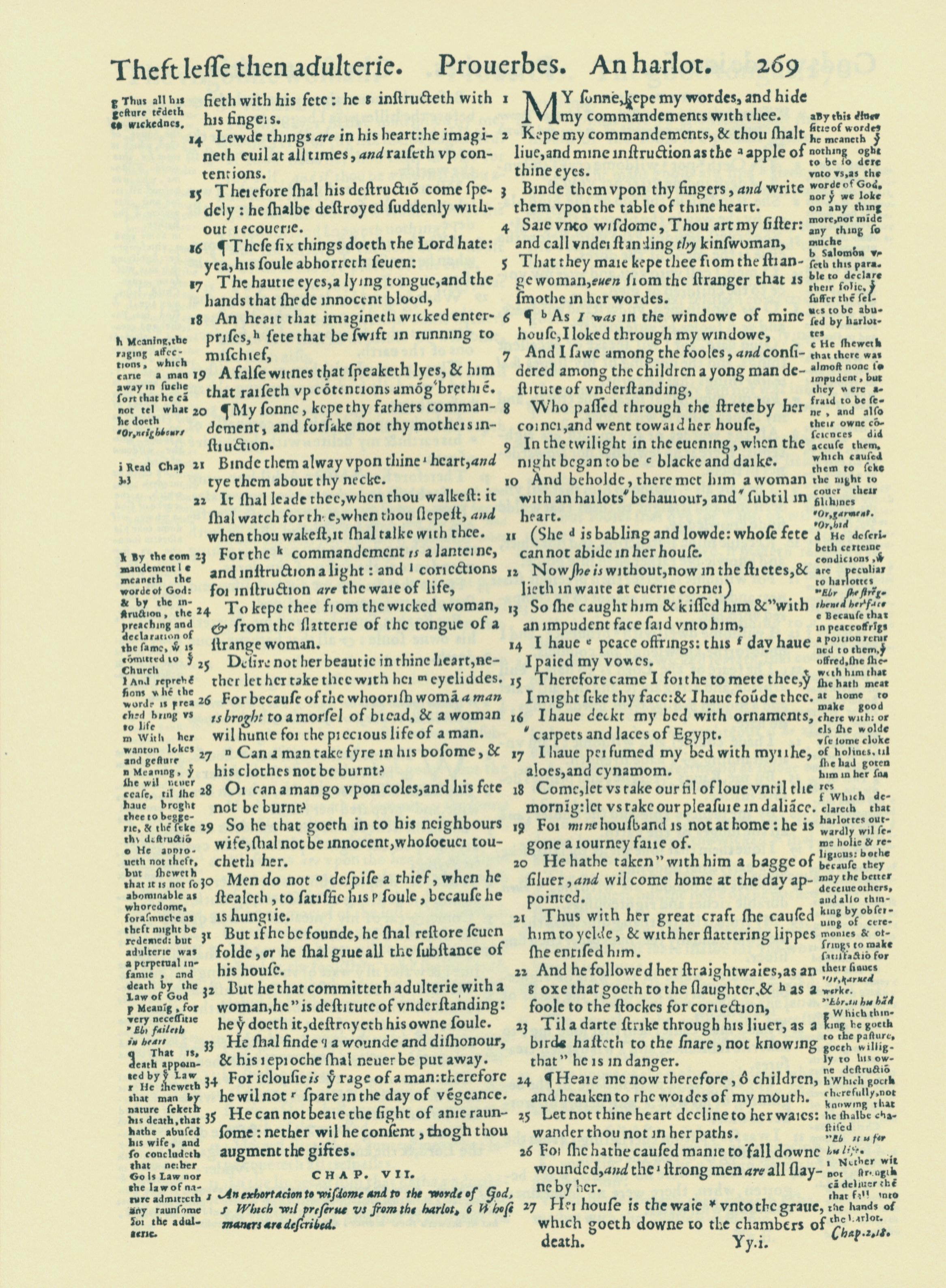 1560年THE BIBLE AND HOLY SCRIPTURES 箴言 6 章 14 節到 7 章 27 節