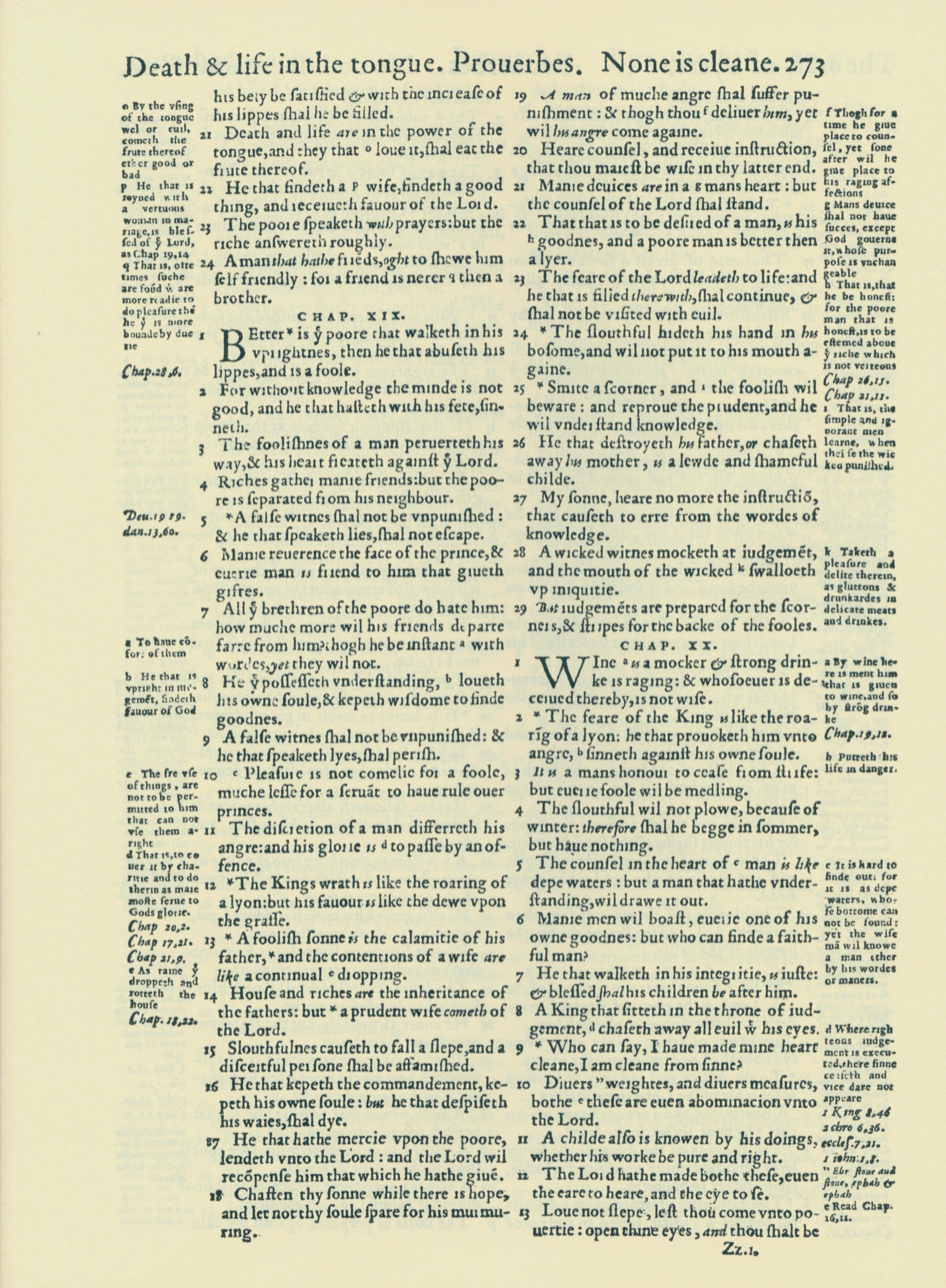 1560年THE BIBLE AND HOLY SCRIPTURES 箴言 18 章 21 節到 20 章 13 節
