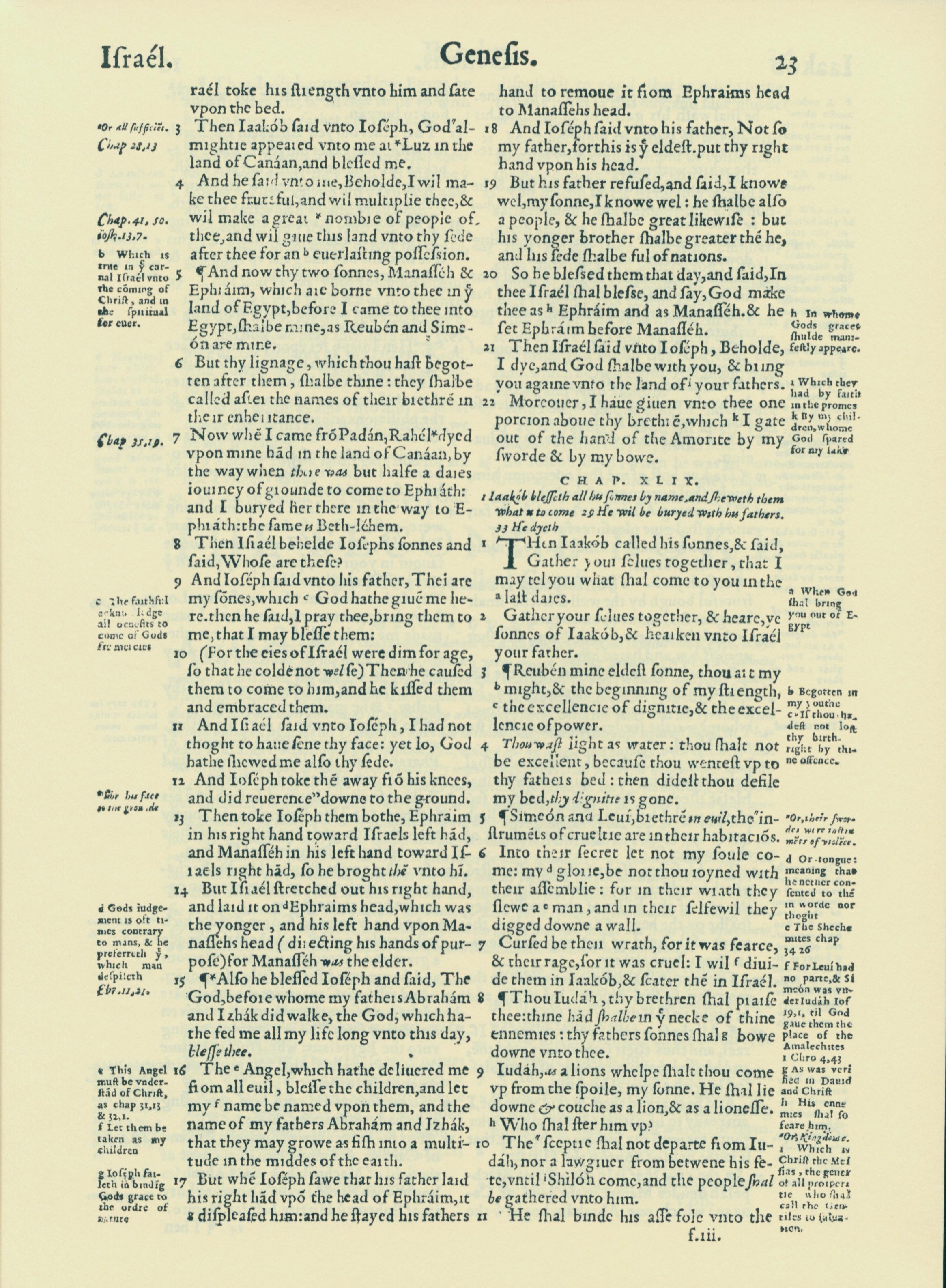1560年THE BIBLE AND HOLY SCRIPTURES 創世記 48 章 3 節到 49 章 11 節