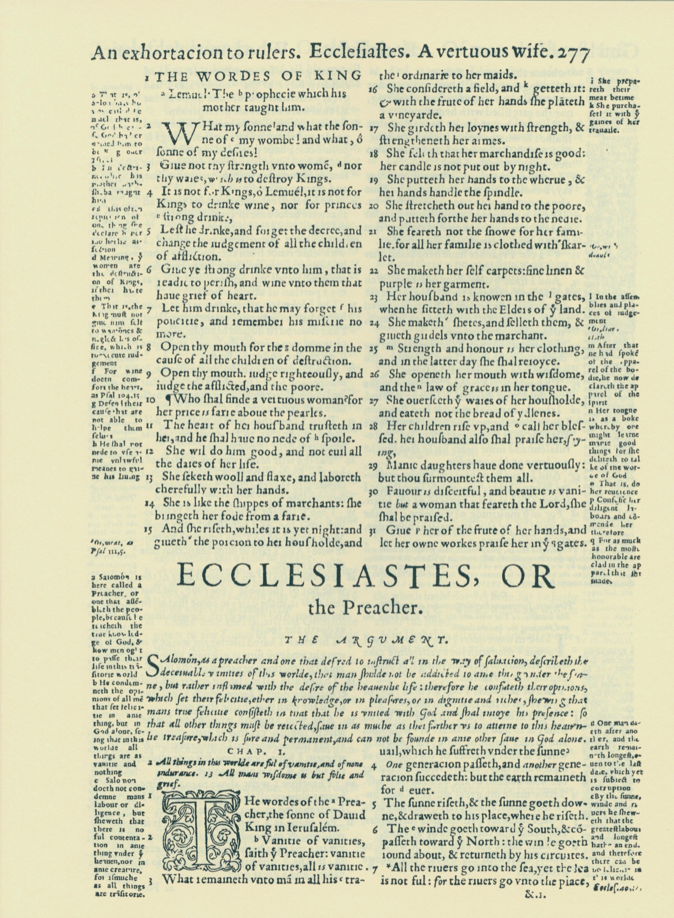 1560年THE BIBLE AND HOLY SCRIPTURES 傳道書 1 章 1 節到 1 章 7 節