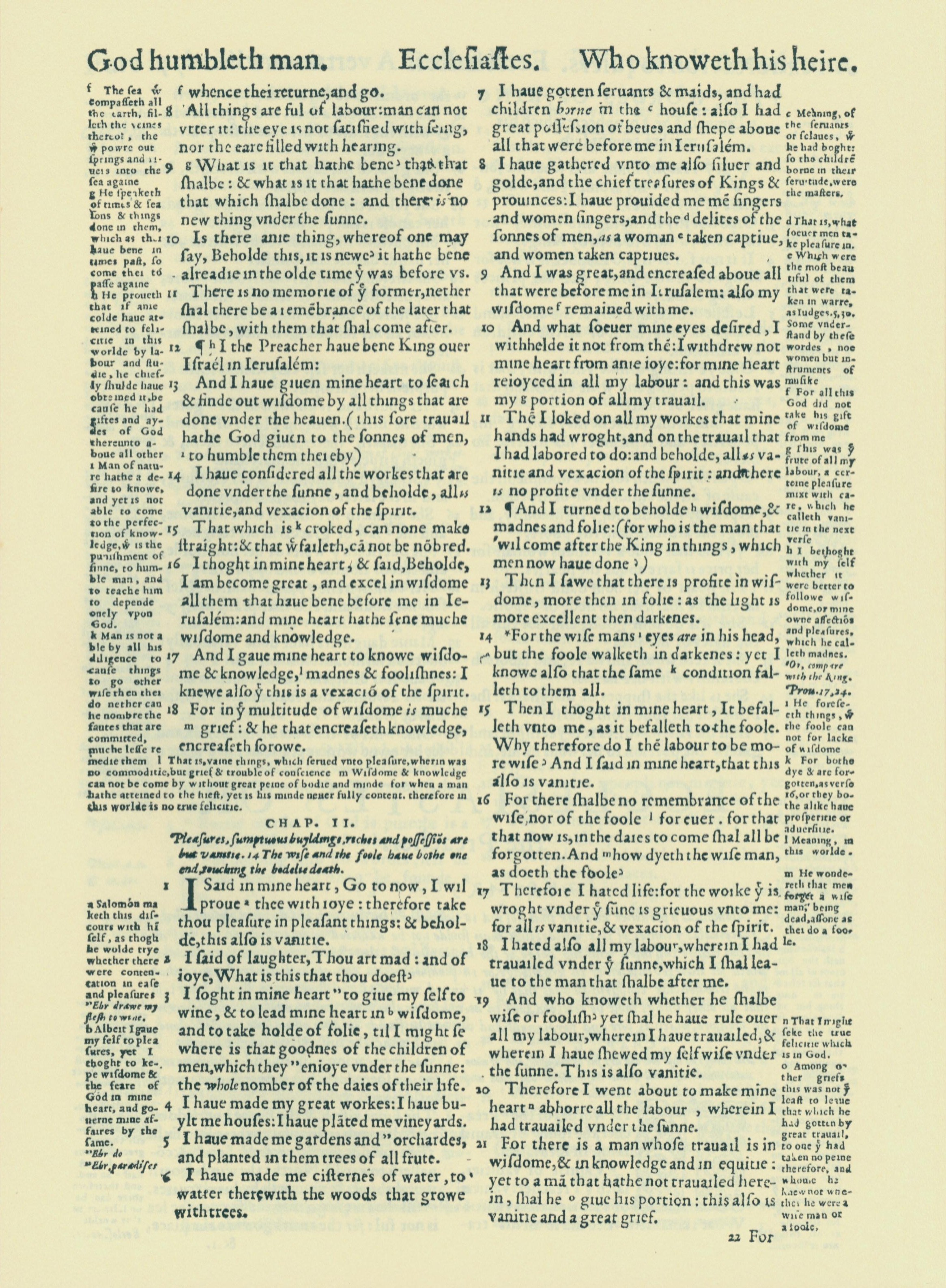 1560年THE BIBLE AND HOLY SCRIPTURES 傳道書 1 章 8 節到 2 章 21 節