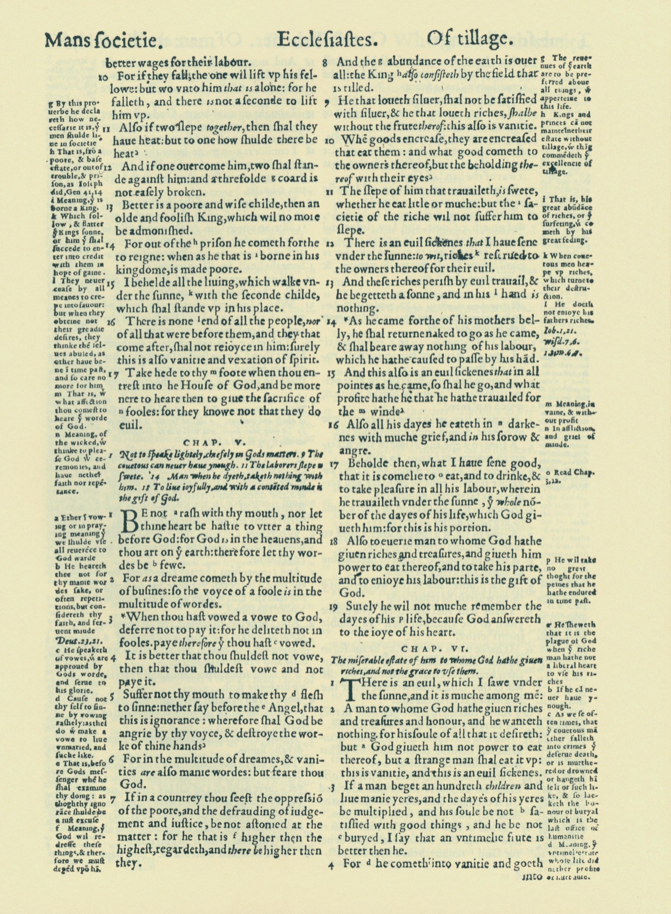 1560年THE BIBLE AND HOLY SCRIPTURES 傳道書 4 章 10 節到 6 章 4 節