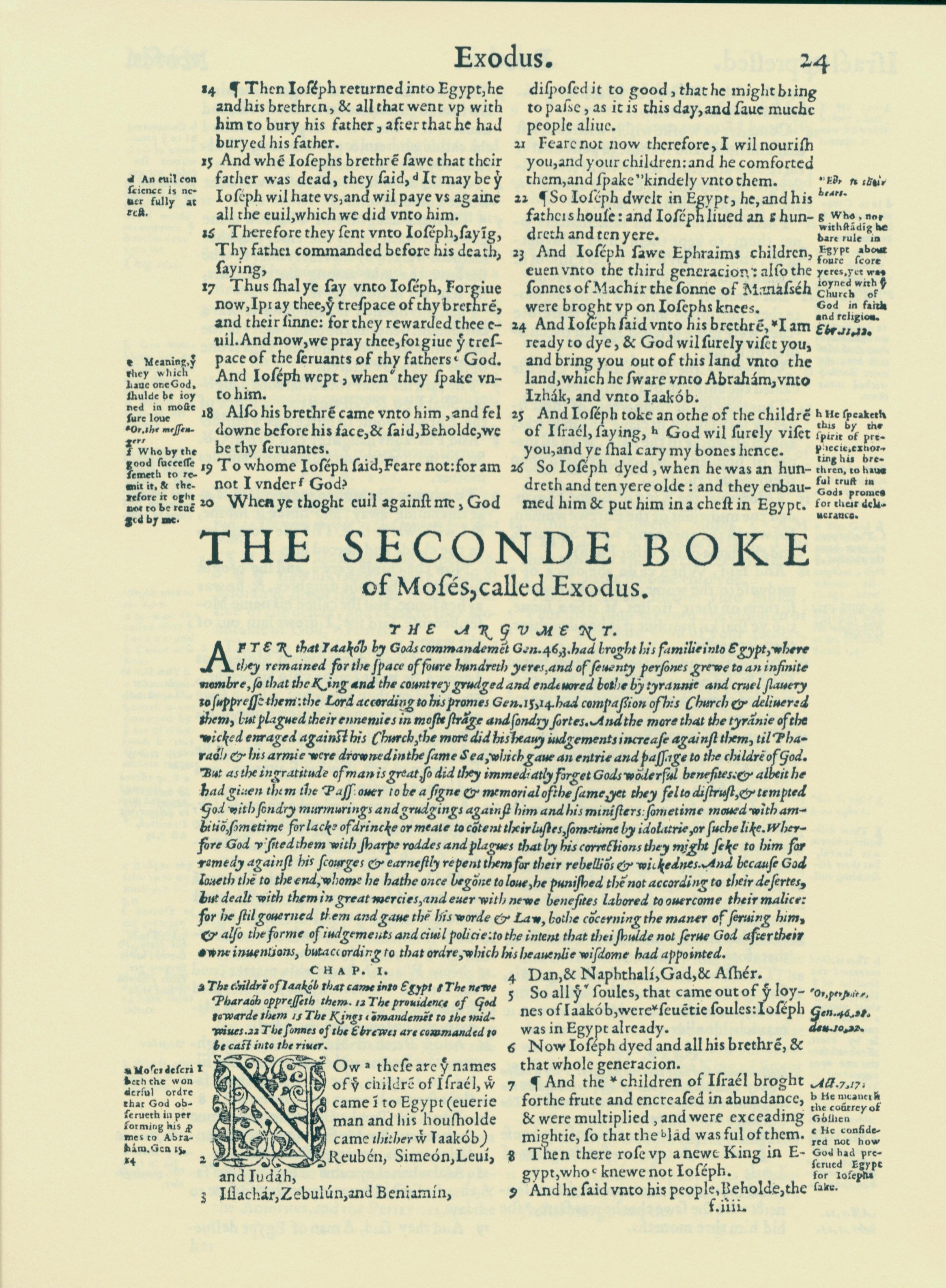 1560年THE BIBLE AND HOLY SCRIPTURES 出埃及記 1 章 1 節到 1 章 9 節