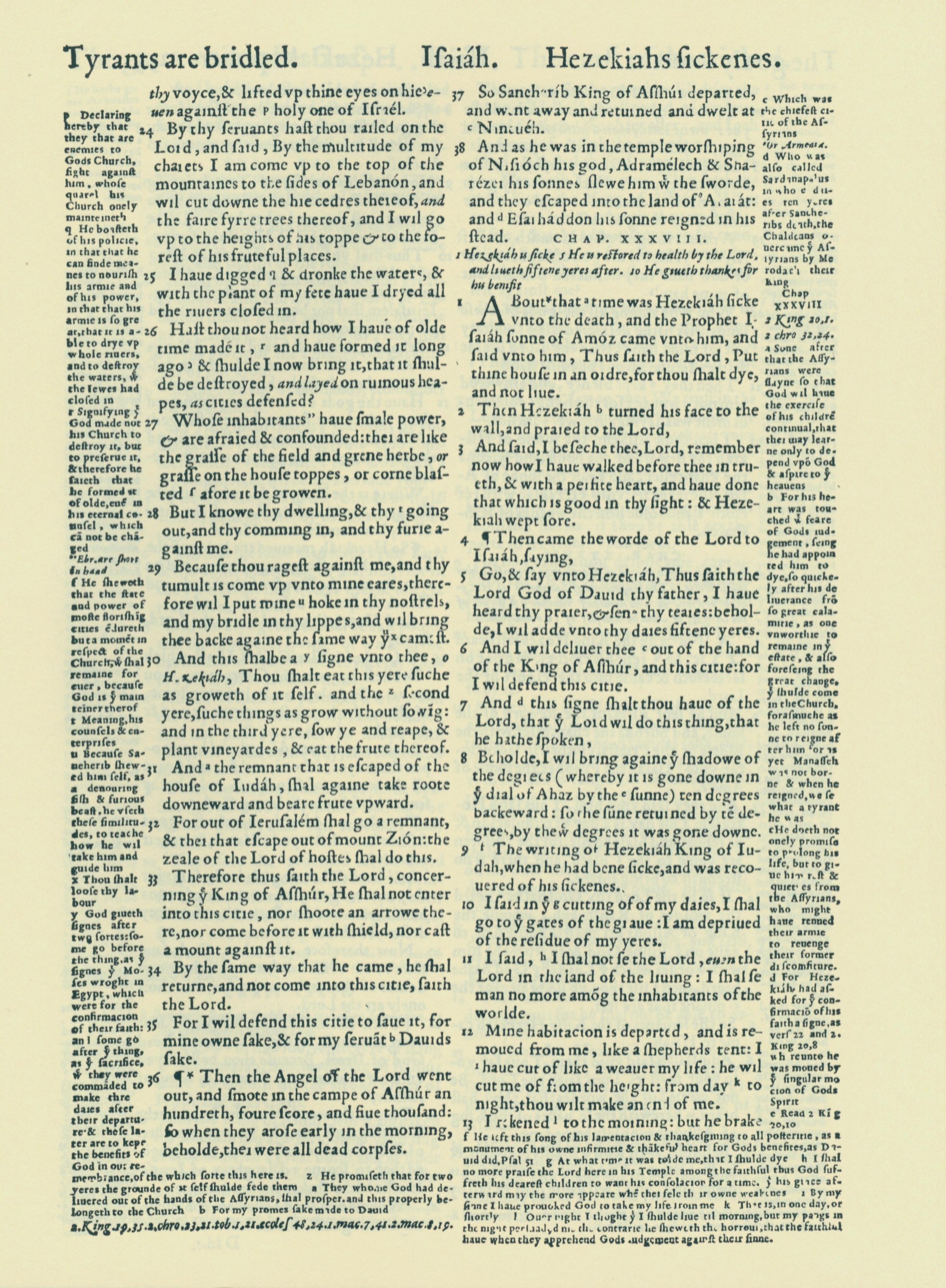 1560年THE BIBLE AND HOLY SCRIPTURES 以賽亞書 37 章 24 節到 38 章 13 節
