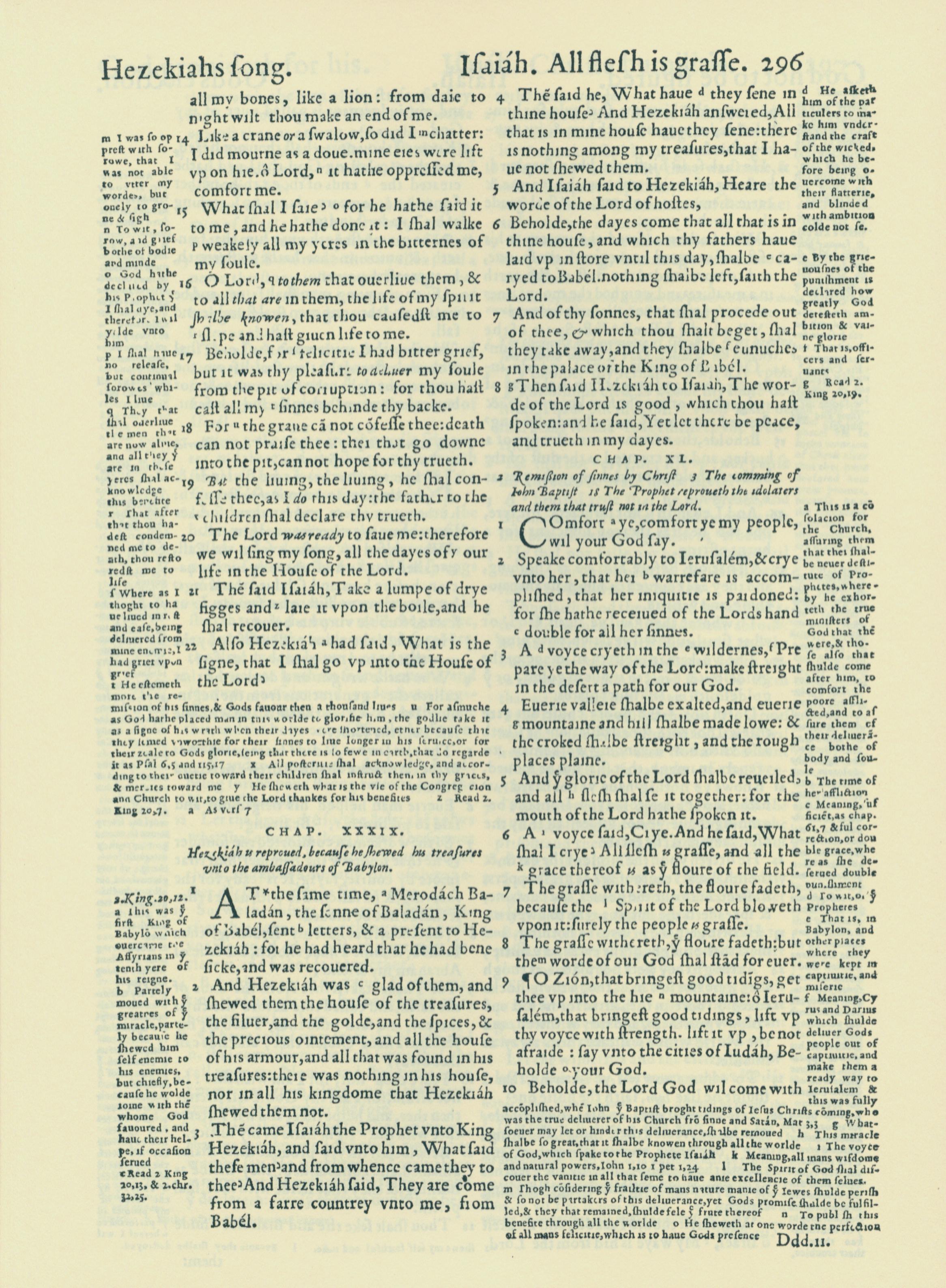 1560年THE BIBLE AND HOLY SCRIPTURES 以賽亞書 38 章 14 節到 40 章 10 節