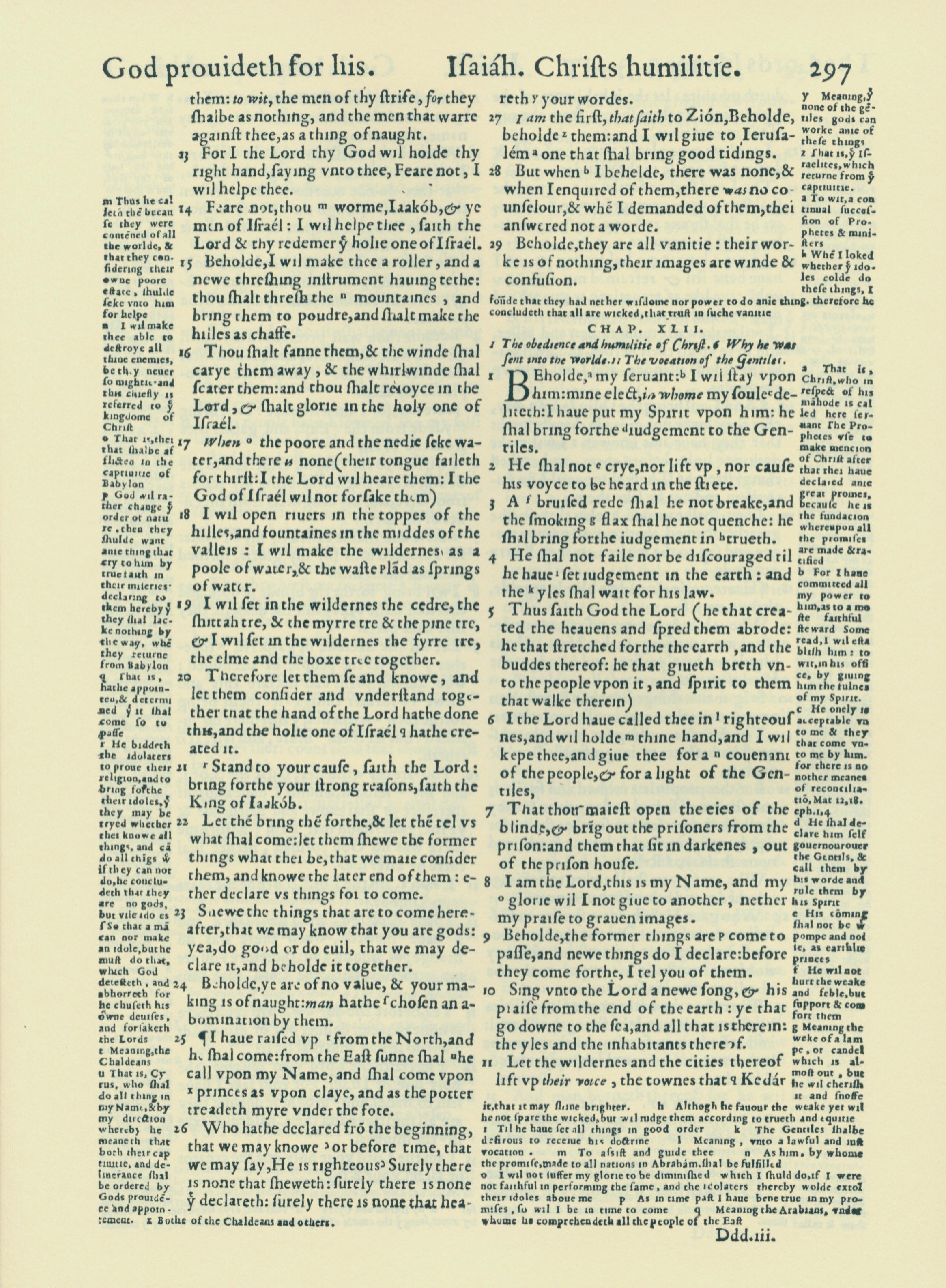 1560年THE BIBLE AND HOLY SCRIPTURES 以賽亞書 41 章 13 節到 42 章 11 節