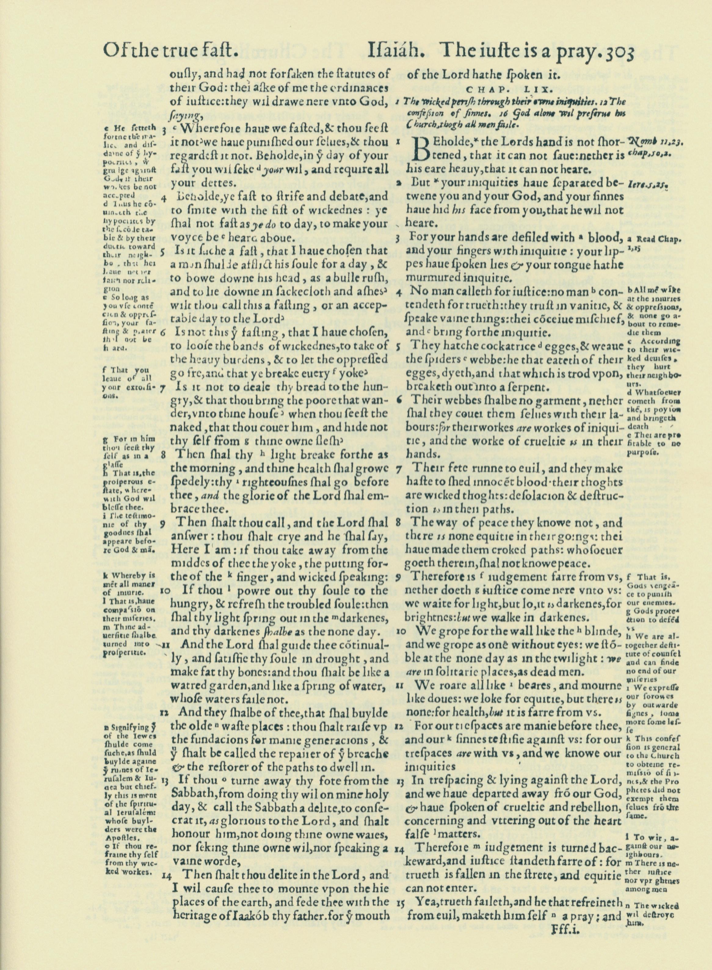1560年THE BIBLE AND HOLY SCRIPTURES 以賽亞書 58 章 3 節到 59 章 15 節