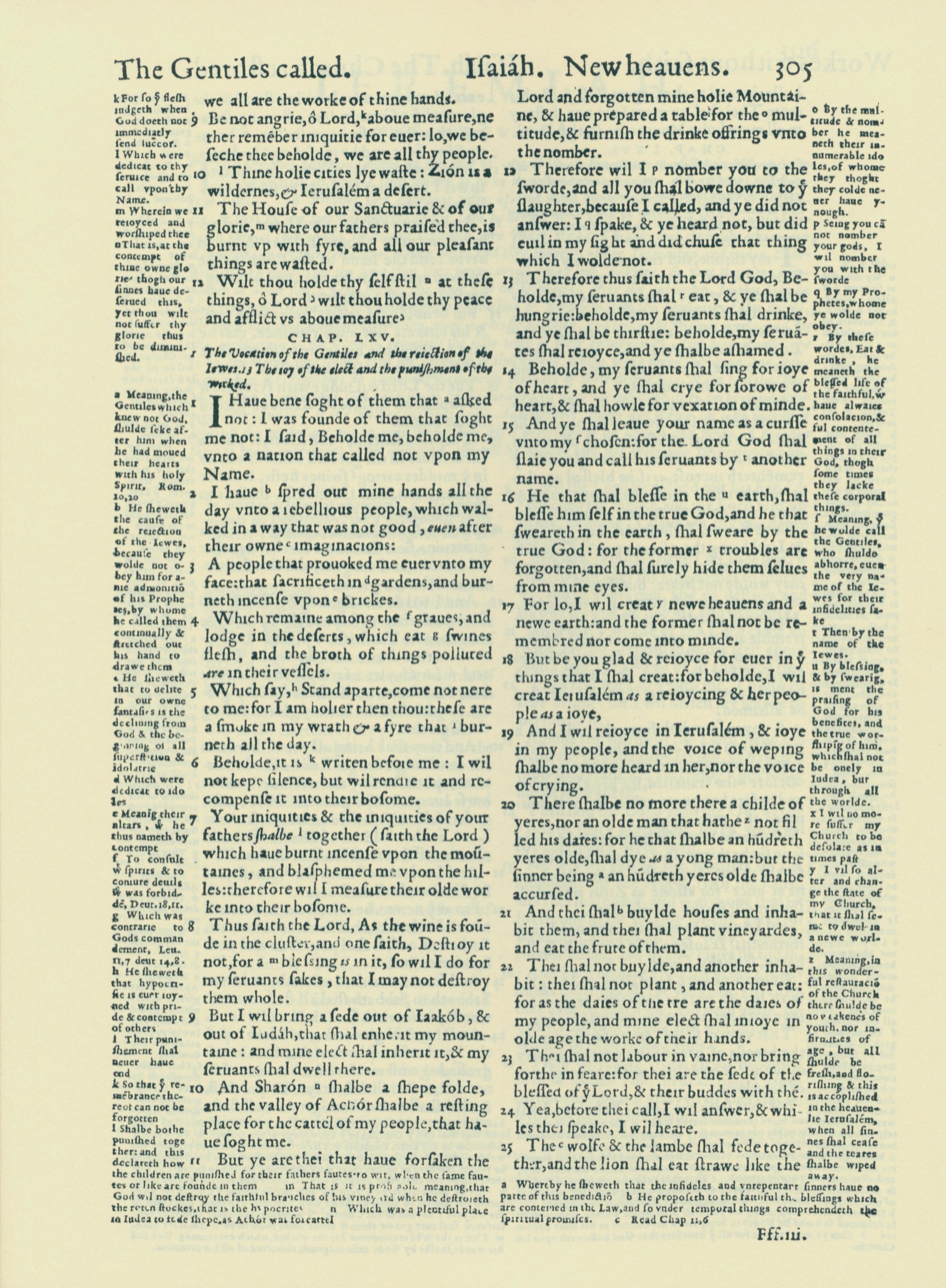 1560年THE BIBLE AND HOLY SCRIPTURES 以賽亞書 64 章 9 節到 65 章 25 節