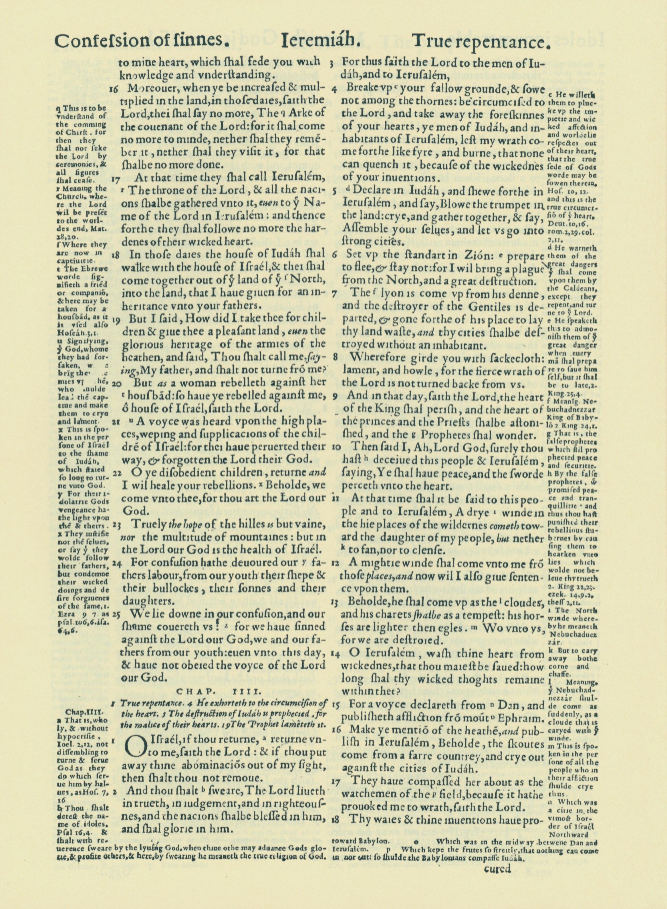 1560年THE BIBLE AND HOLY SCRIPTURES 耶利米書 3 章 16 節到 4 章 18 節