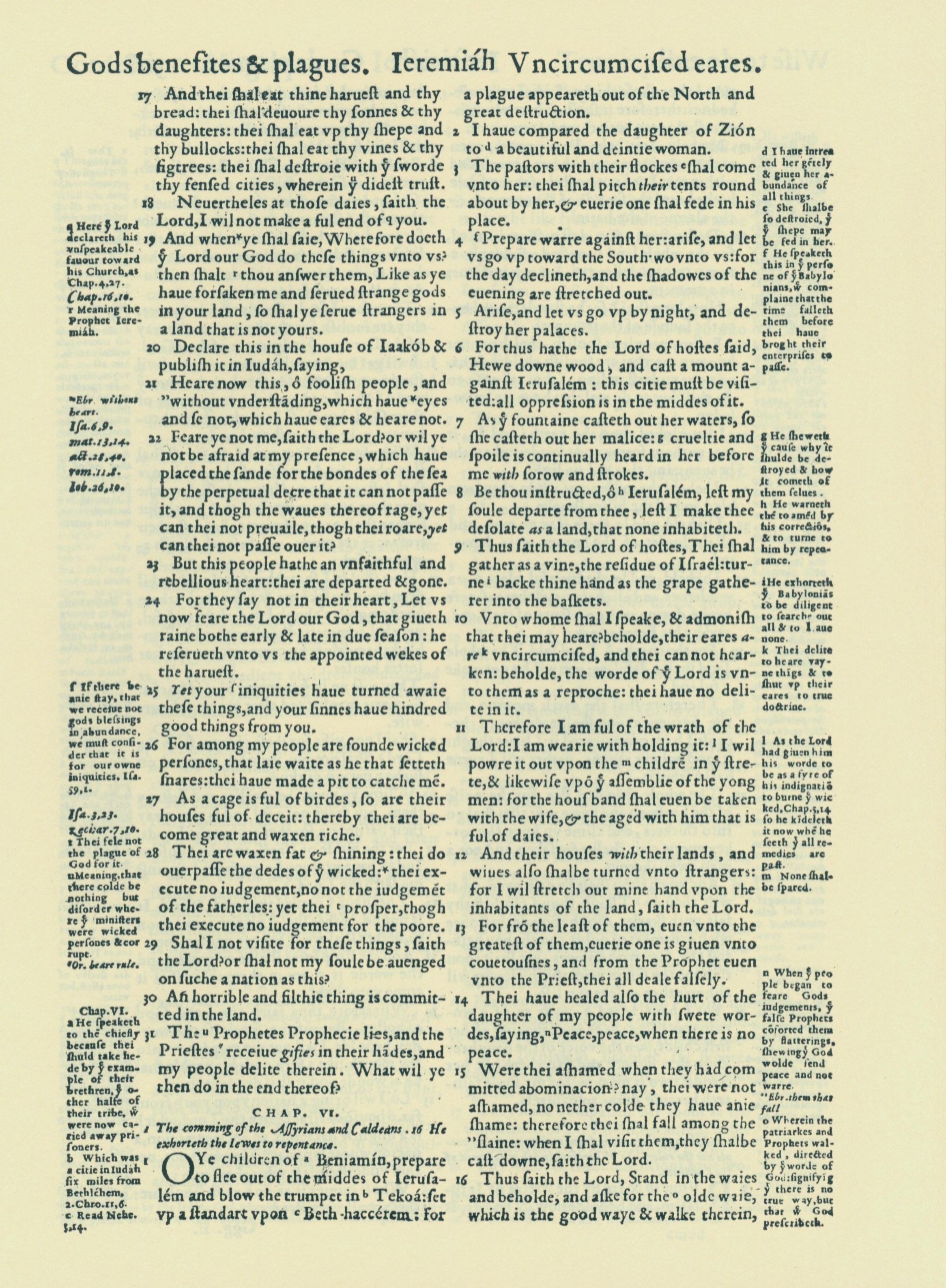 1560年THE BIBLE AND HOLY SCRIPTURES 耶利米書 5 章 17 節到 6 章 16 節