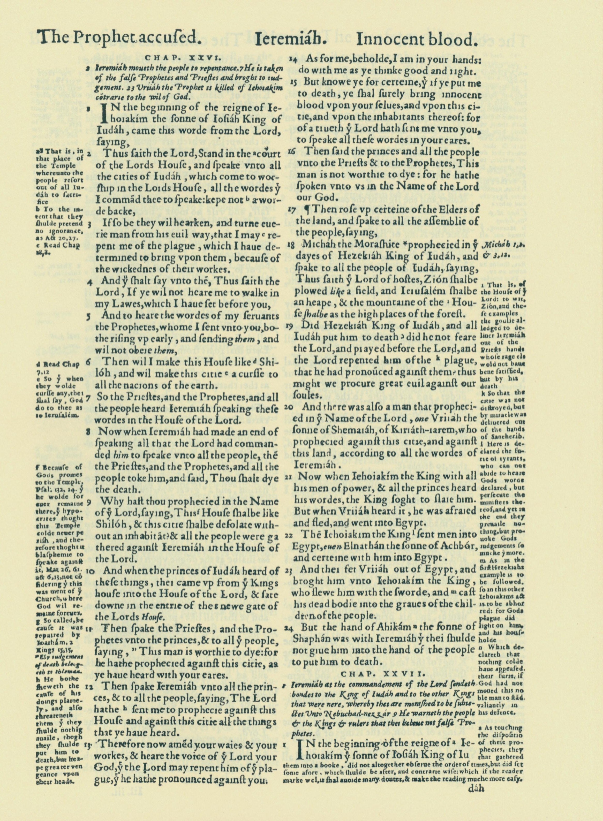 1560年THE BIBLE AND HOLY SCRIPTURES 耶利米書 26 章 1 節到 27 章 1 節