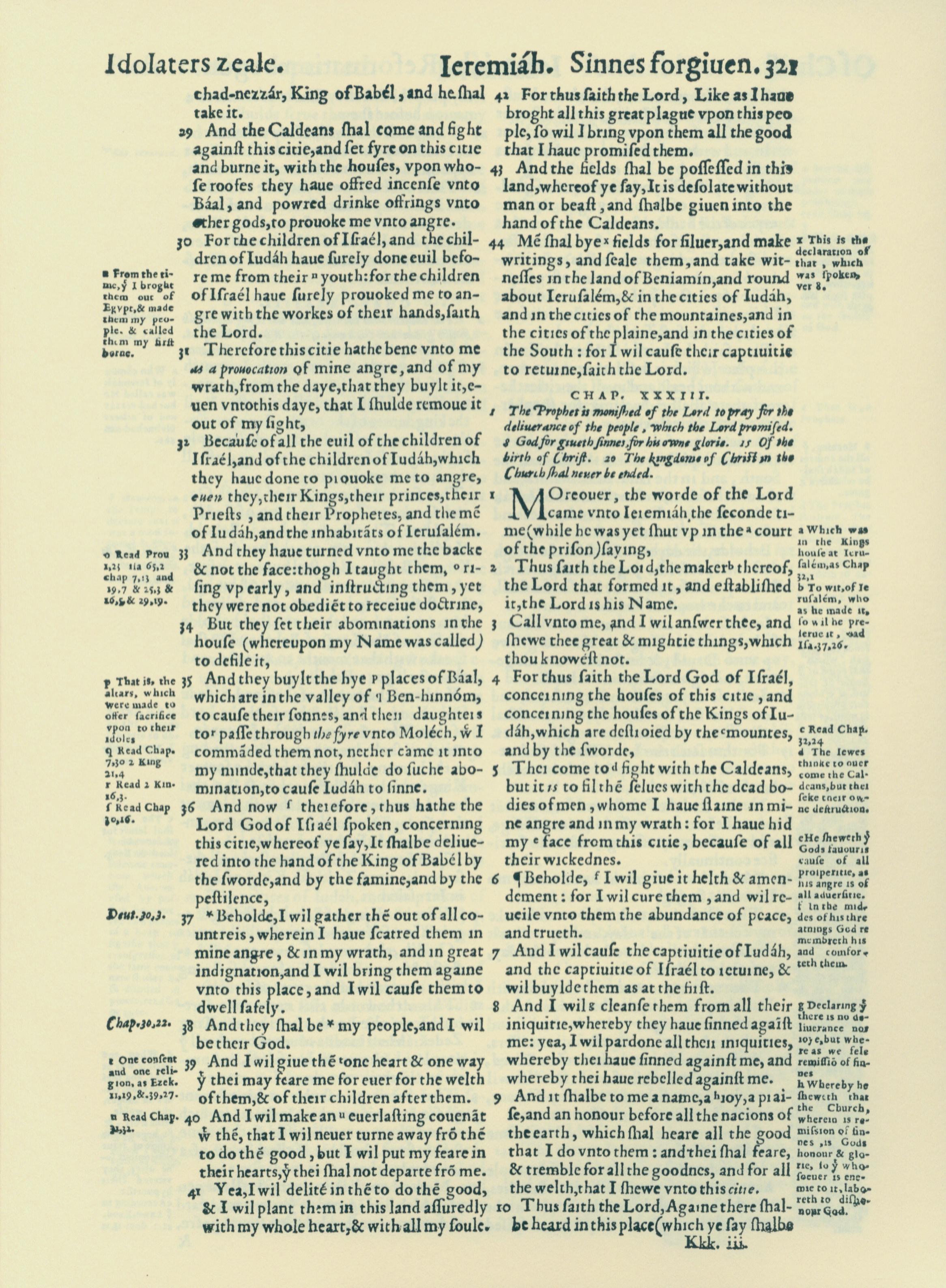 1560年THE BIBLE AND HOLY SCRIPTURES 耶利米書 32 章 29 節到 33 章 10 節