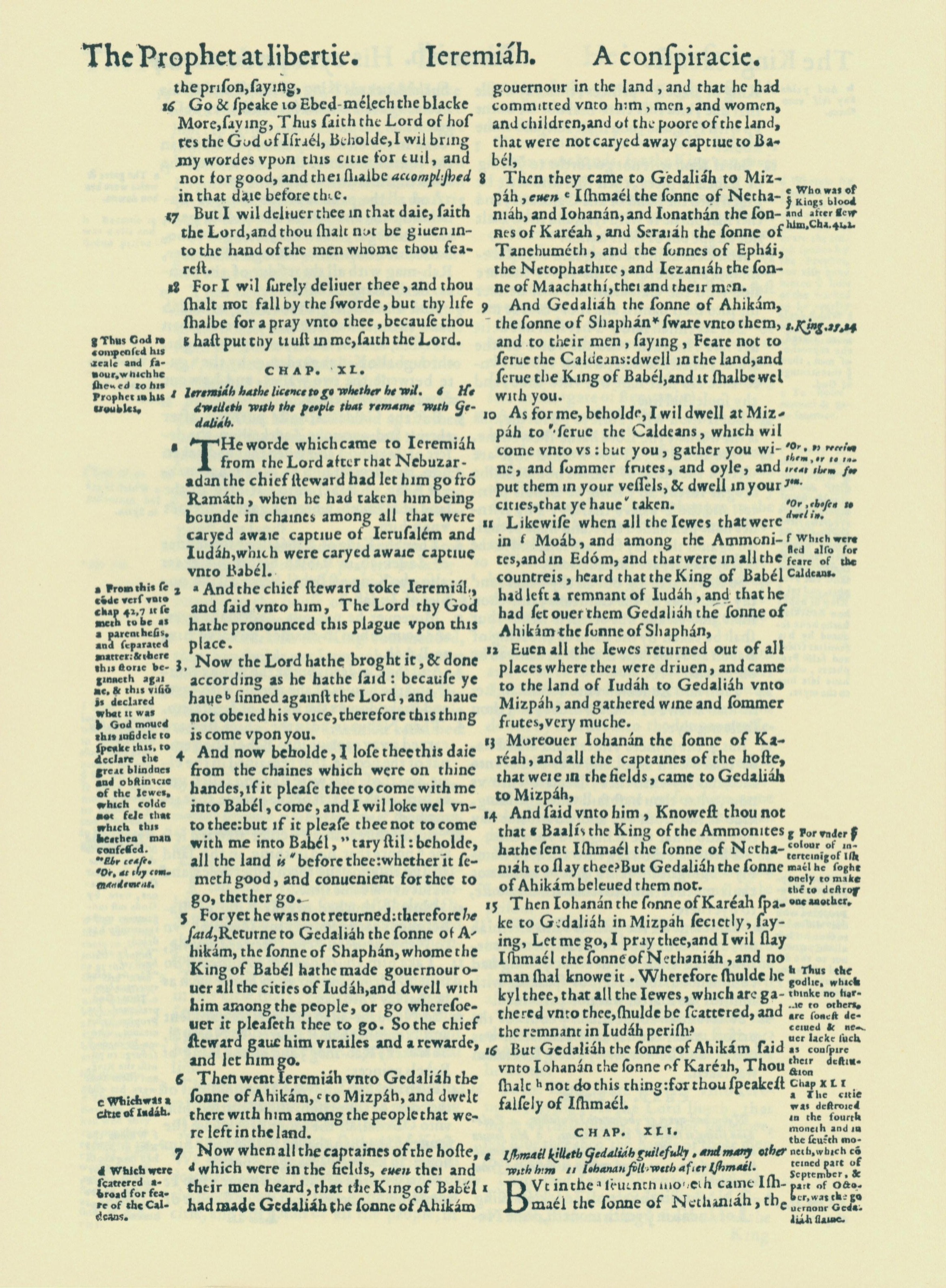 1560年THE BIBLE AND HOLY SCRIPTURES 耶利米書 39 章 16 節到 41 章 1 節