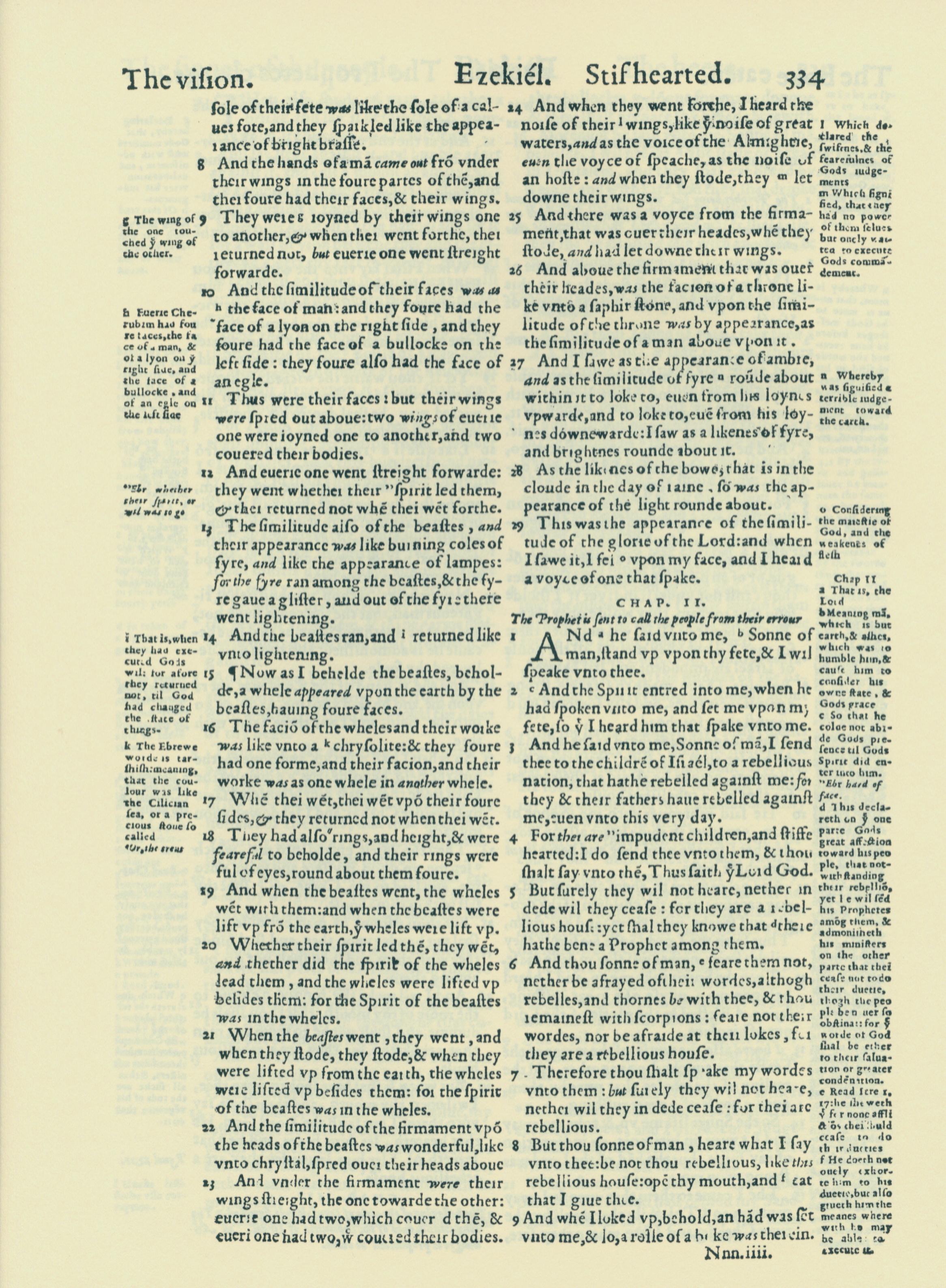 1560年THE BIBLE AND HOLY SCRIPTURES 以西結書 1 章 8 節到 2 章 9 節