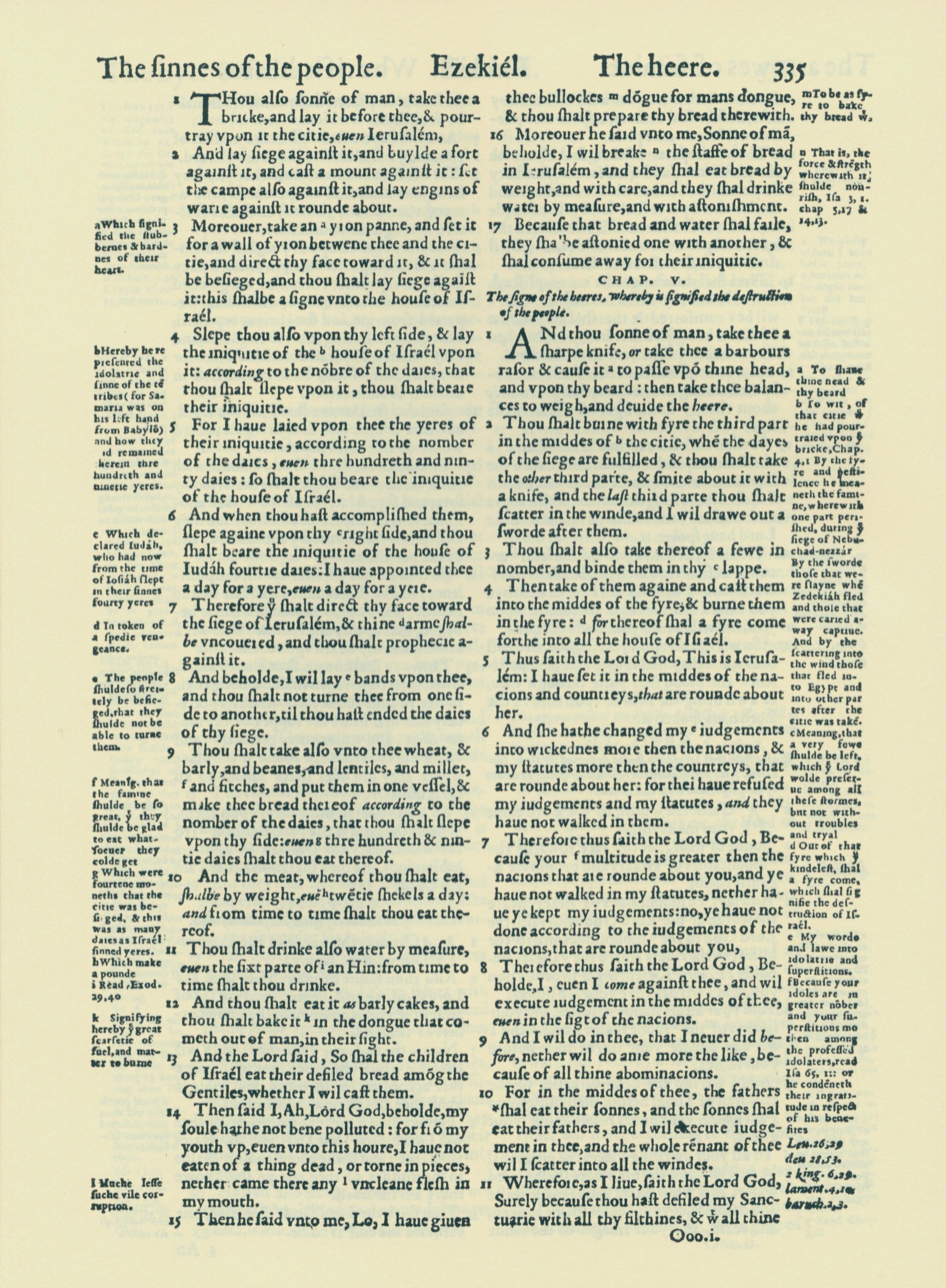 1560年THE BIBLE AND HOLY SCRIPTURES 以西結書 4 章 1 節到 5 章 11 節