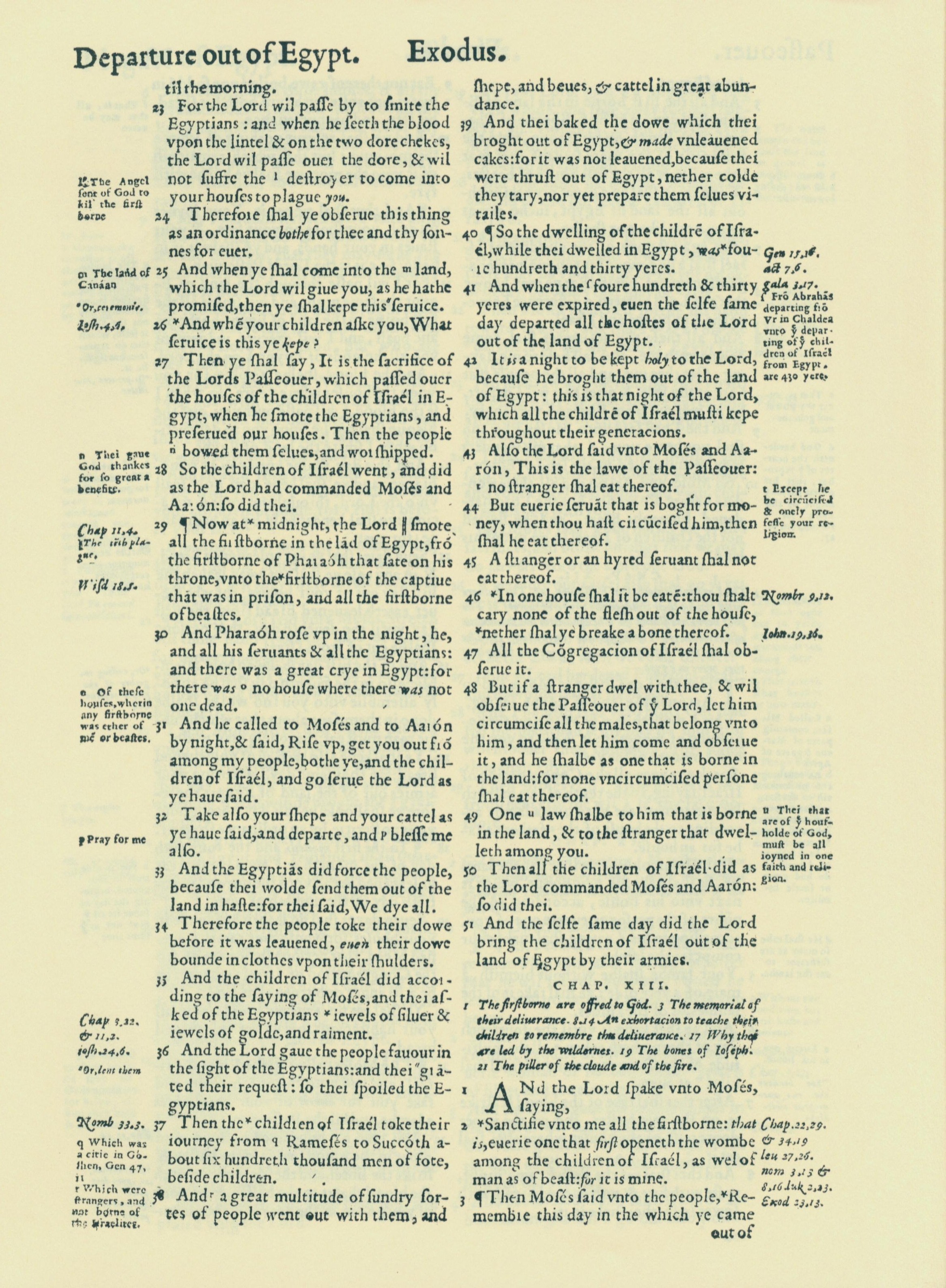 1560年THE BIBLE AND HOLY SCRIPTURES 出埃及記 12 章 23 節到 13 章 3 節