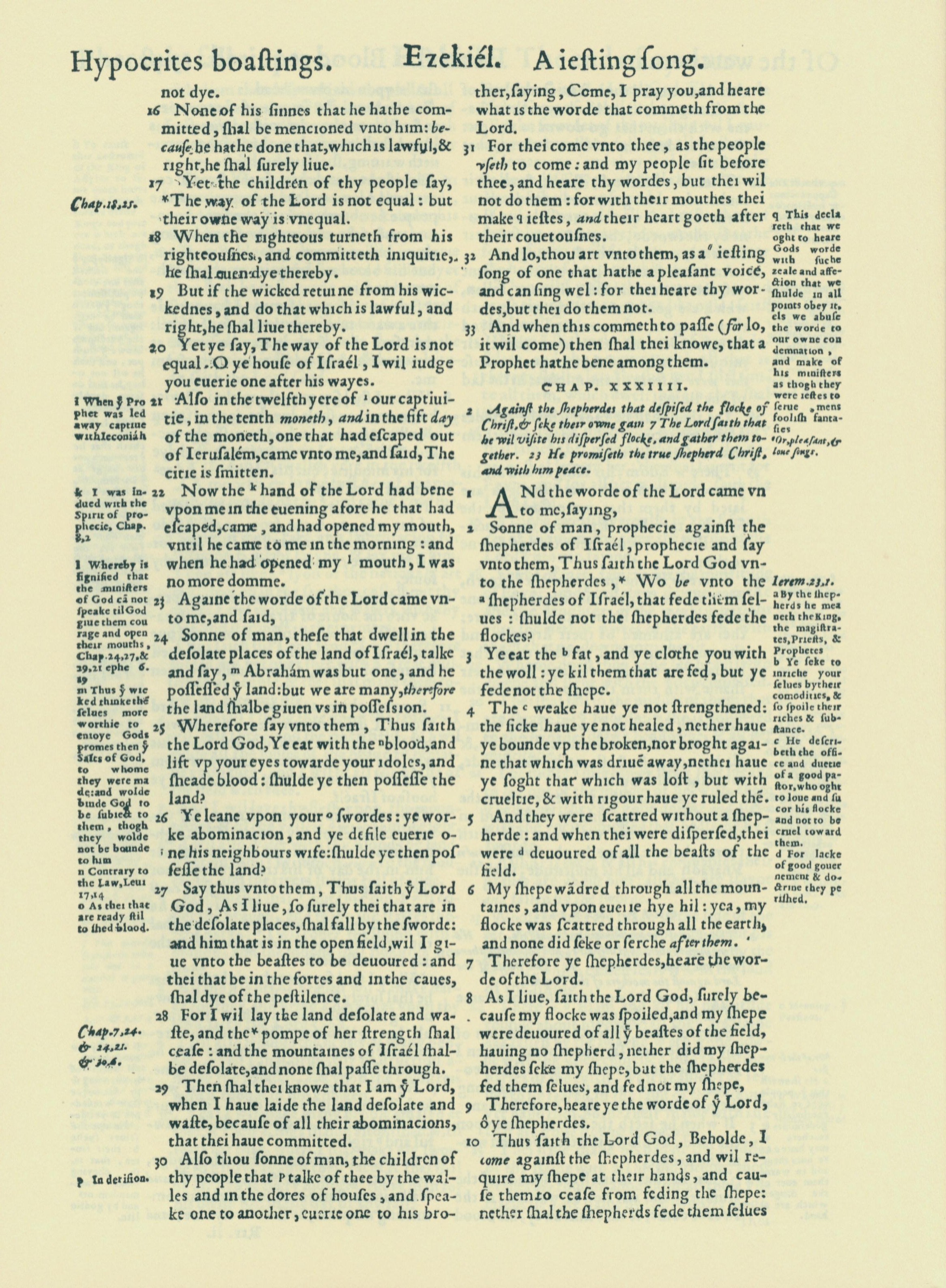 1560年THE BIBLE AND HOLY SCRIPTURES 以西結書 33 章 16 節到 34 章 10 節