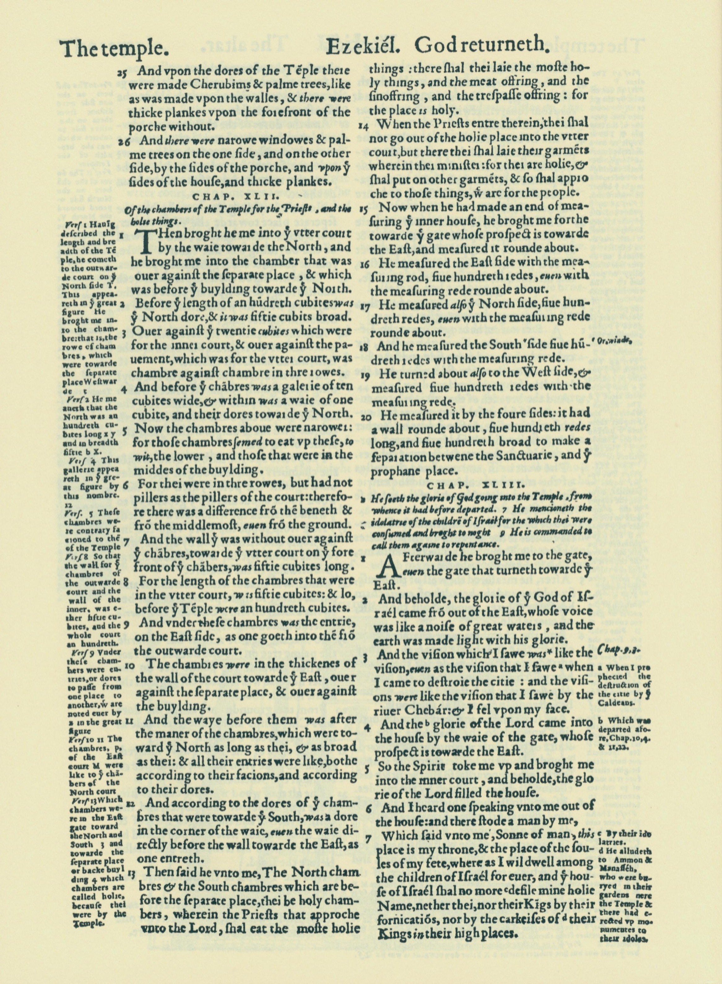 1560年THE BIBLE AND HOLY SCRIPTURES 以西結書 41 章 25 節到 43 章 7 節