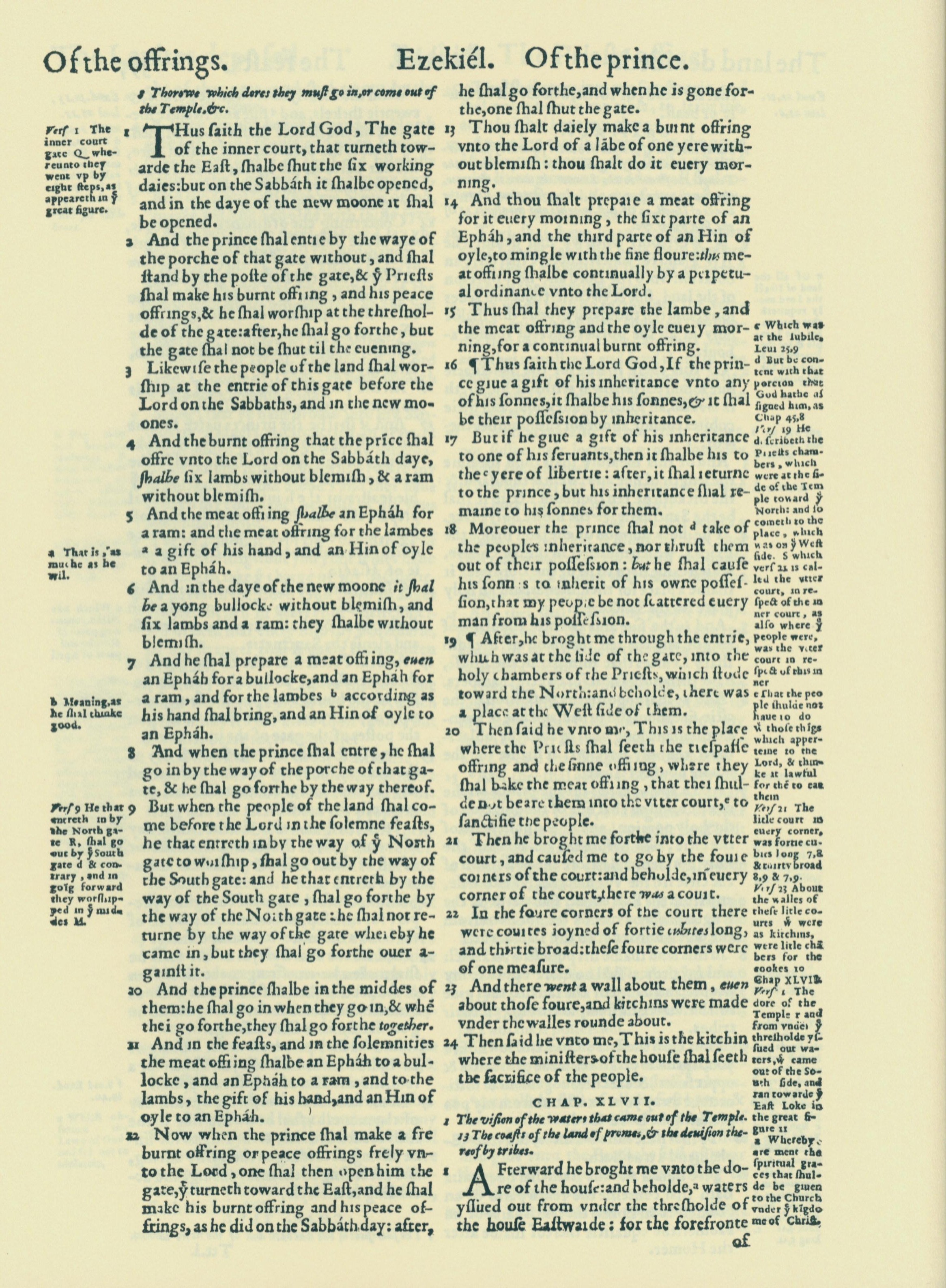 1560年THE BIBLE AND HOLY SCRIPTURES 以西結書 46 章 1 節到 47 章 1 節