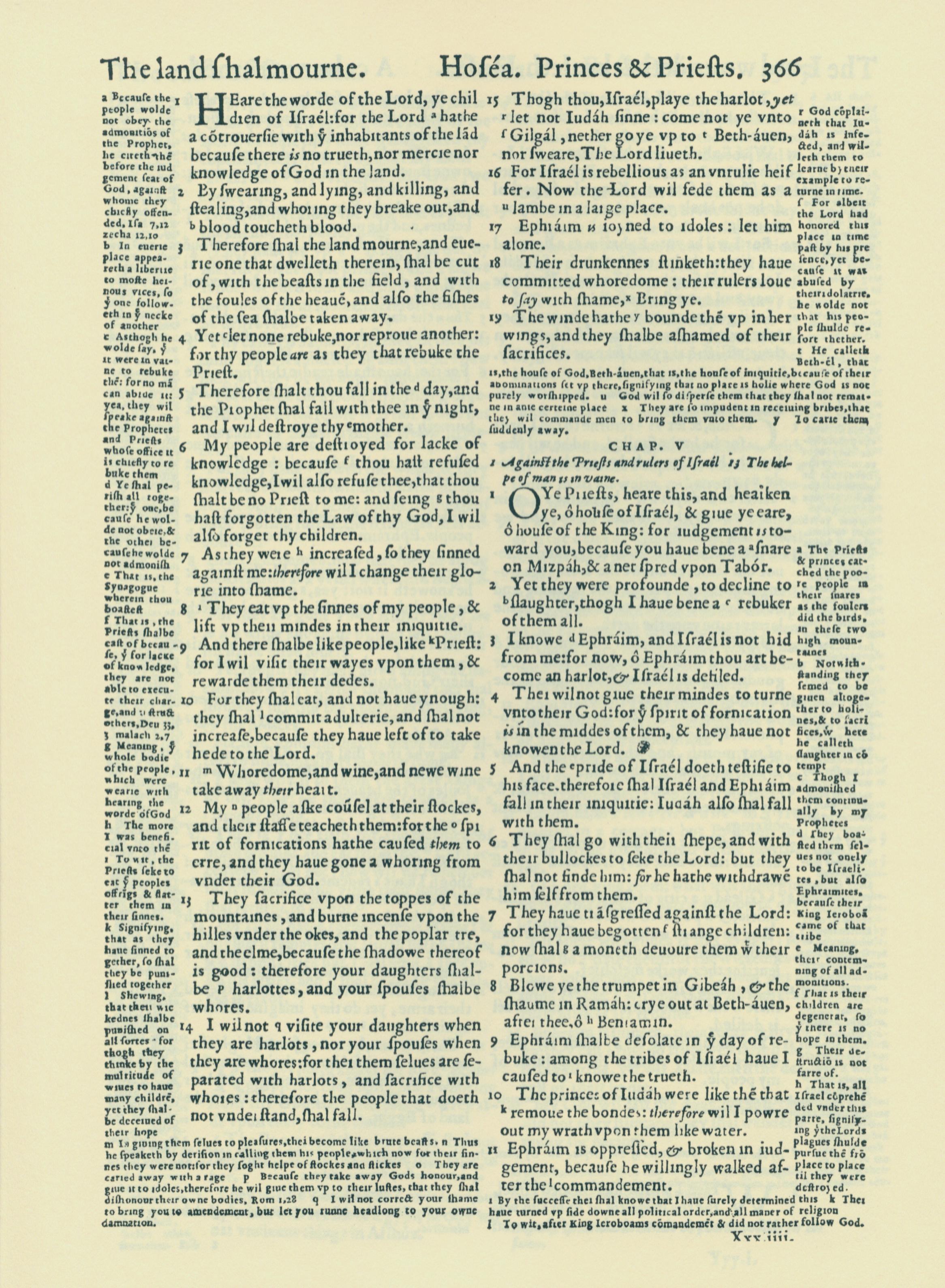 1560年THE BIBLE AND HOLY SCRIPTURES 何西阿書 4 章 1 節到 5 章 11 節