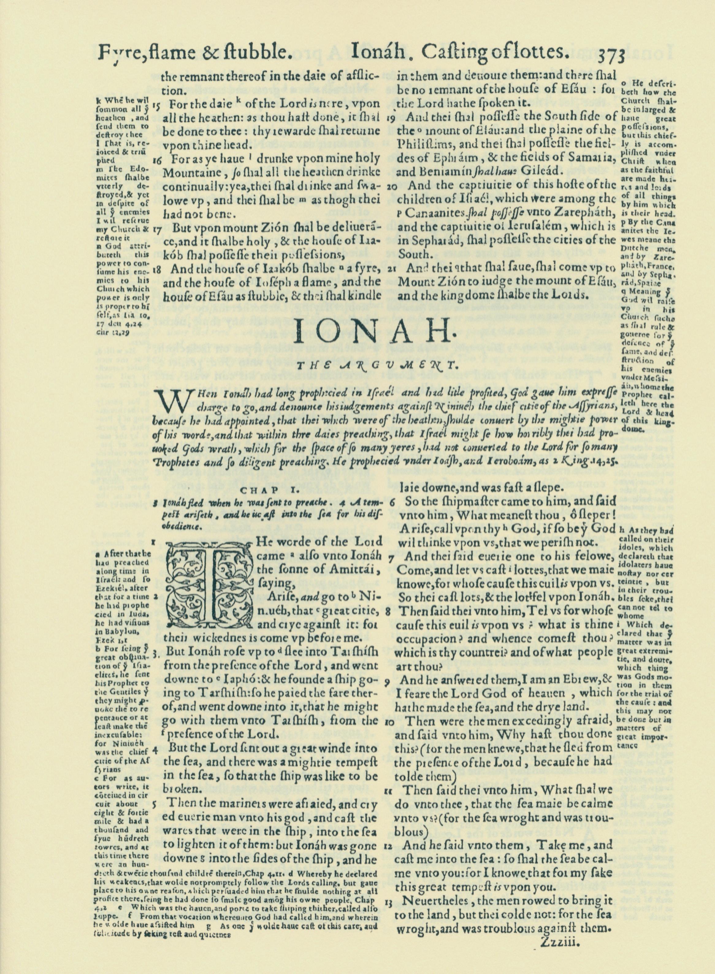 1560年THE BIBLE AND HOLY SCRIPTURES 約拿書 1 章 1 節到 1 章 13 節