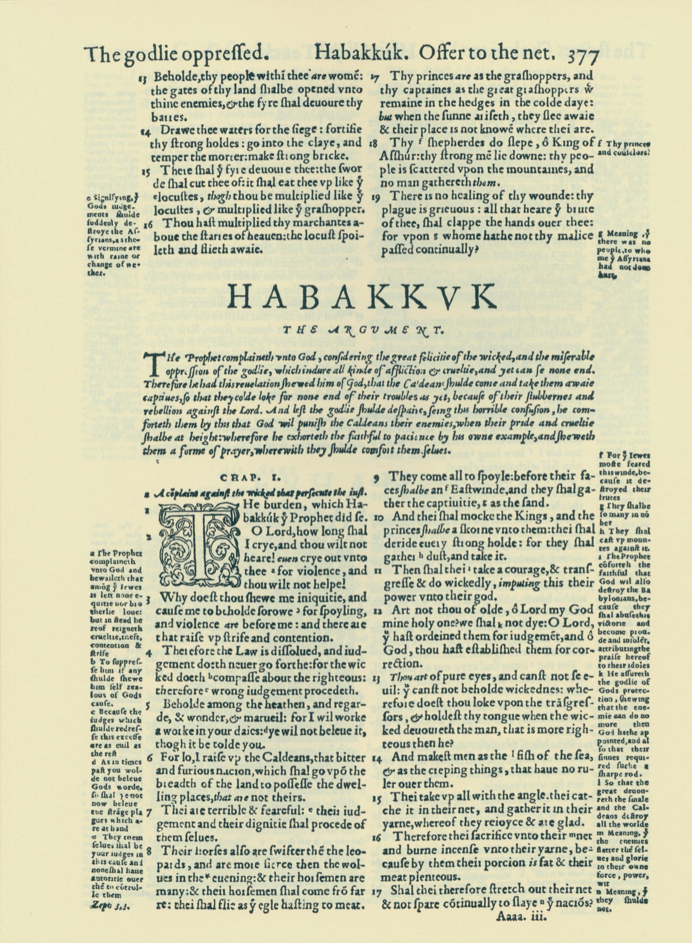 1560年THE BIBLE AND HOLY SCRIPTURES 哈巴谷書 1 章 1 節到 1 章 17 節