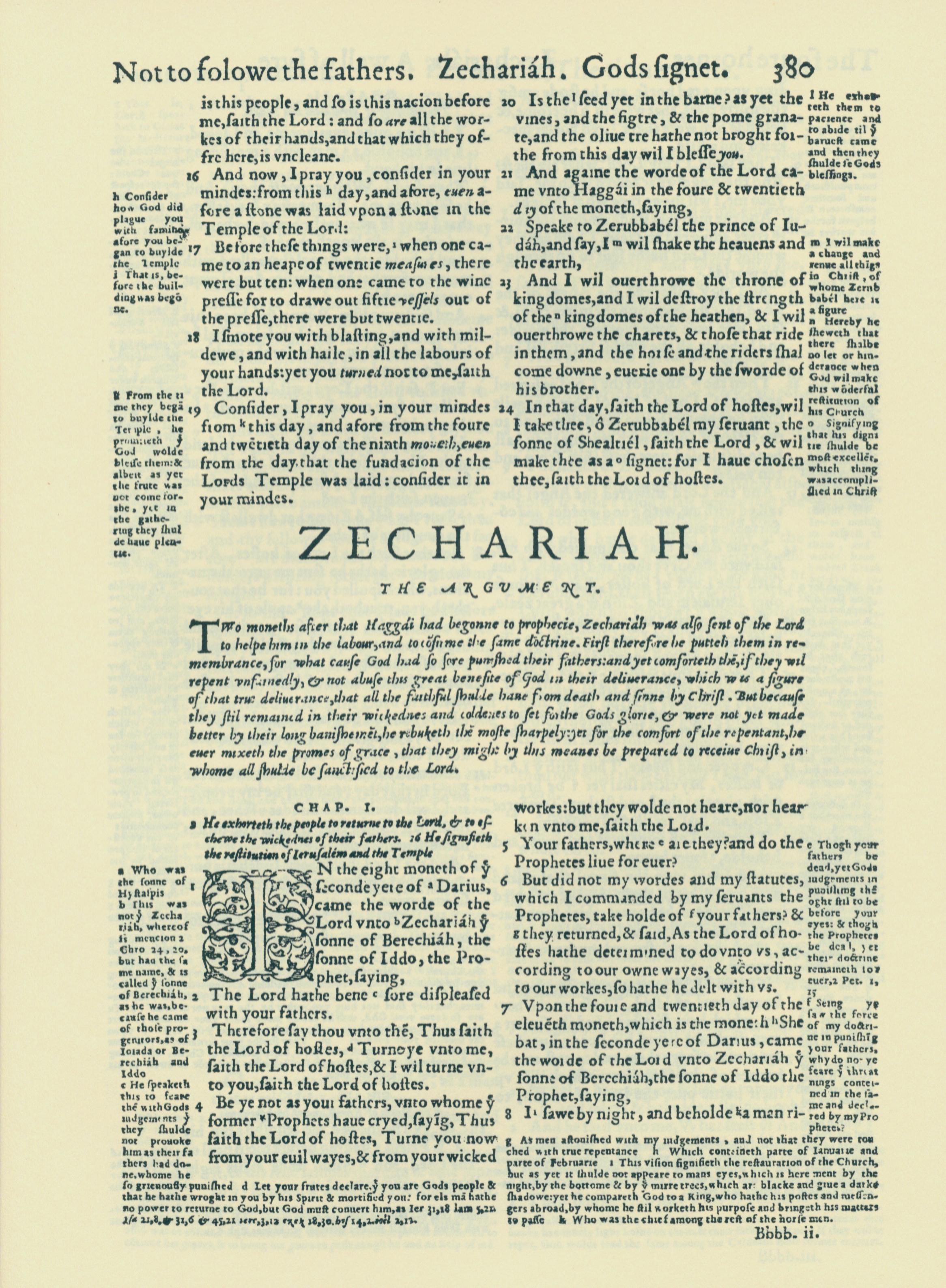 1560年THE BIBLE AND HOLY SCRIPTURES 撒迦利亞書 1 章 1 節到 1 章 8 節
