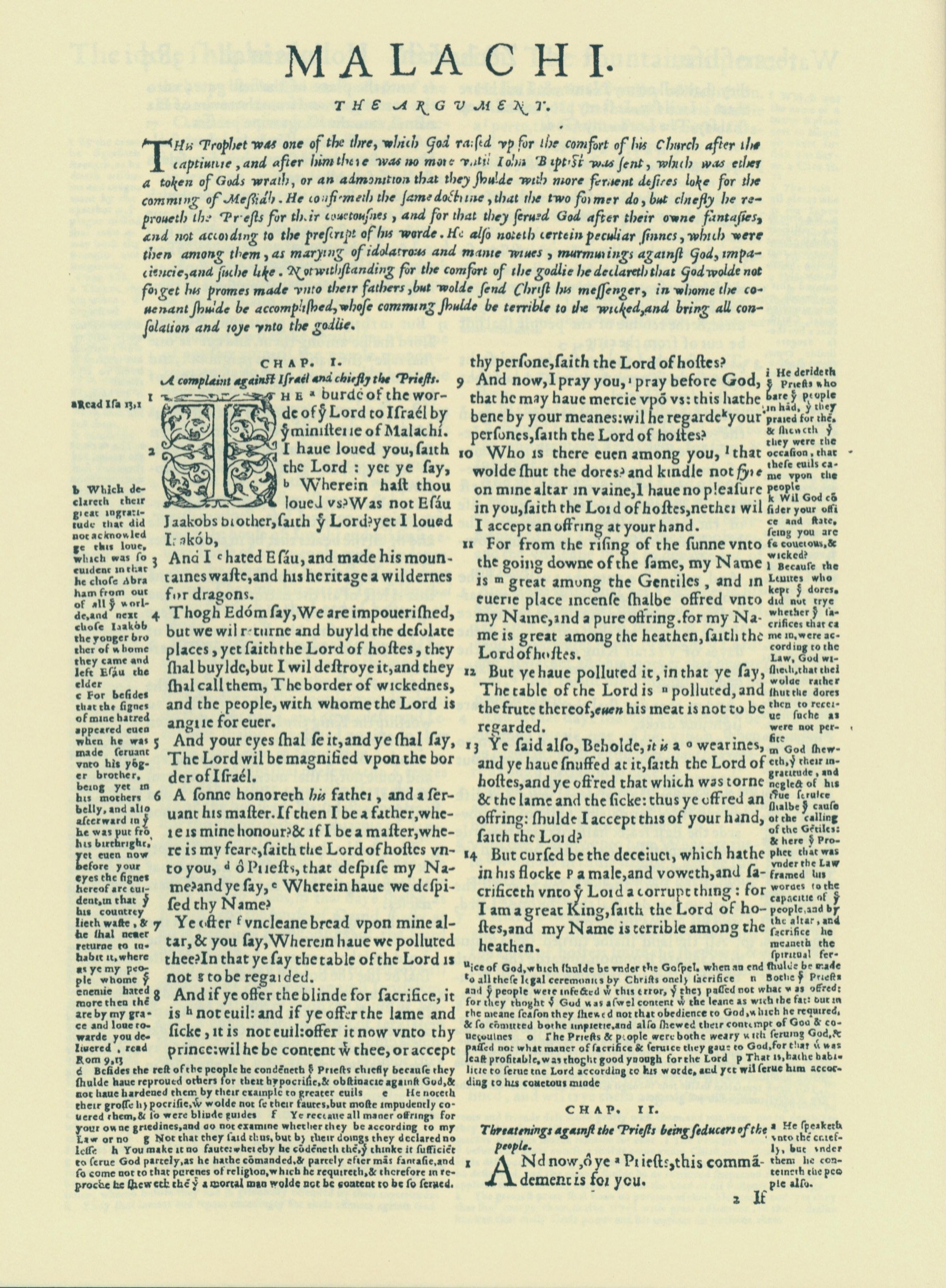 1560年THE BIBLE AND HOLY SCRIPTURES 瑪拉基書 1 章 1 節到 2 章 1 節