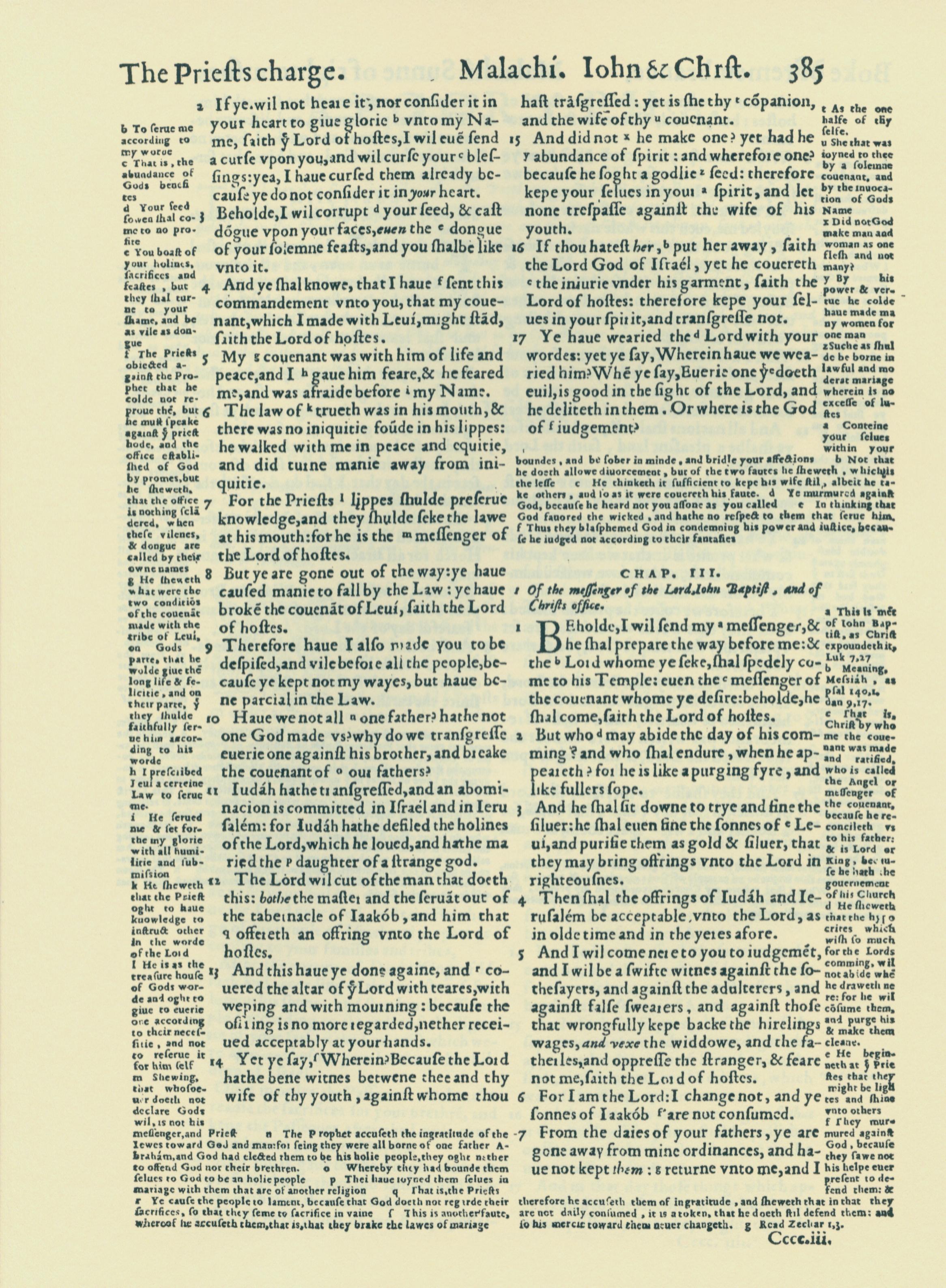 1560年THE BIBLE AND HOLY SCRIPTURES 瑪拉基書 2 章 2 節到 3 章 7 節