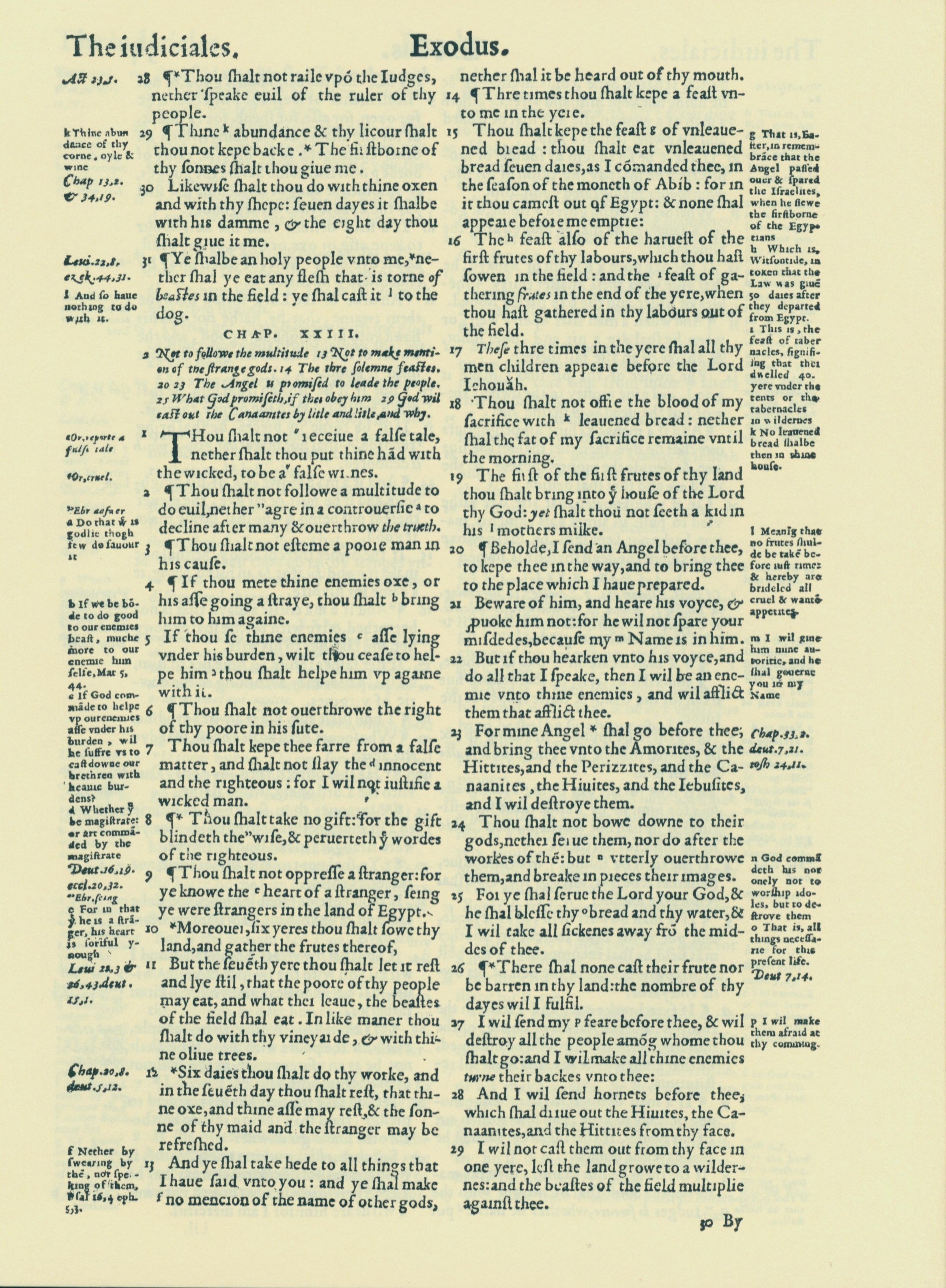 1560年THE BIBLE AND HOLY SCRIPTURES 出埃及記 22 章 28 節到 23 章 29 節