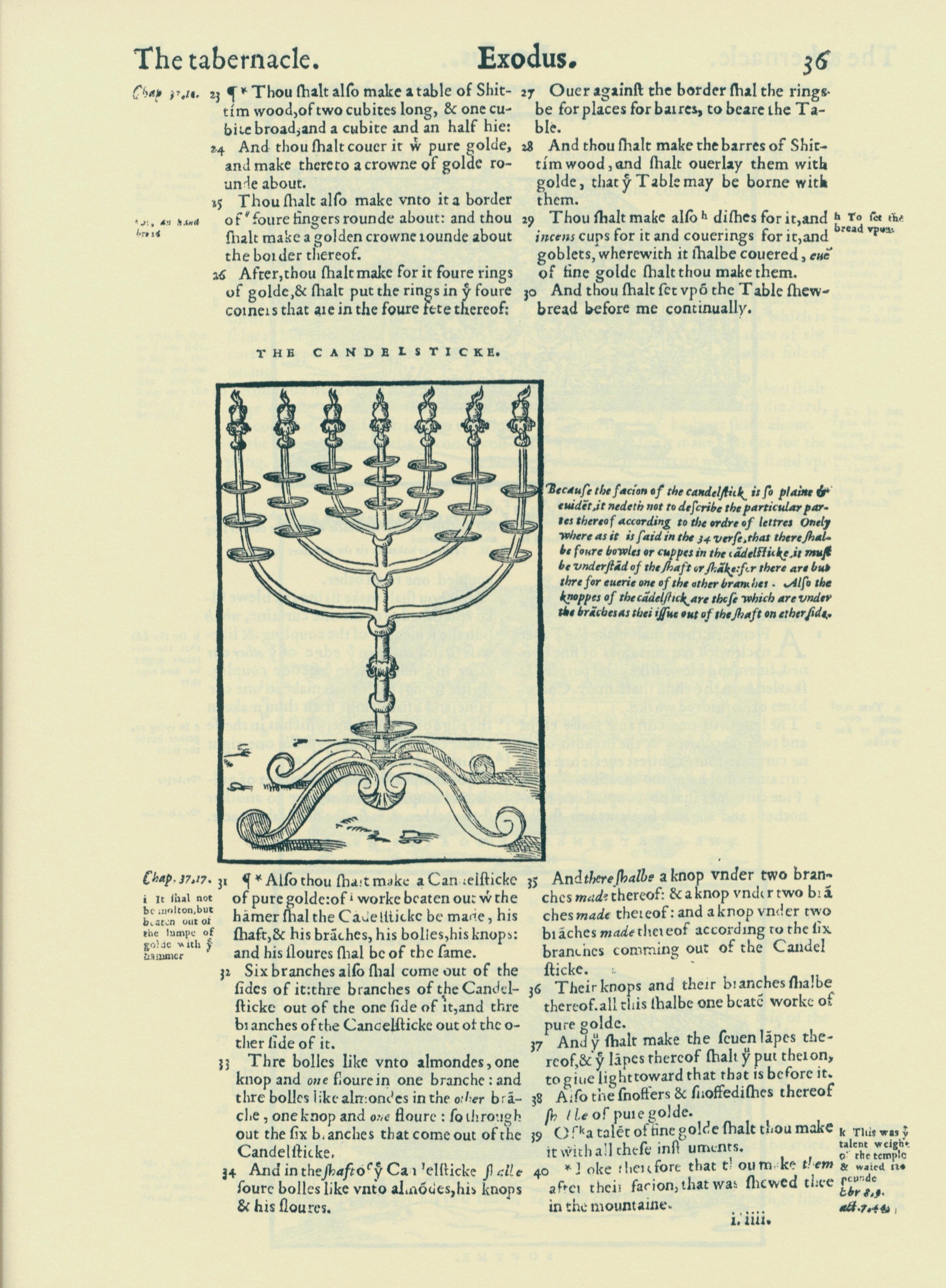 1560年THE BIBLE AND HOLY SCRIPTURES 出埃及記 25 章 23 節到 25 章 40 節