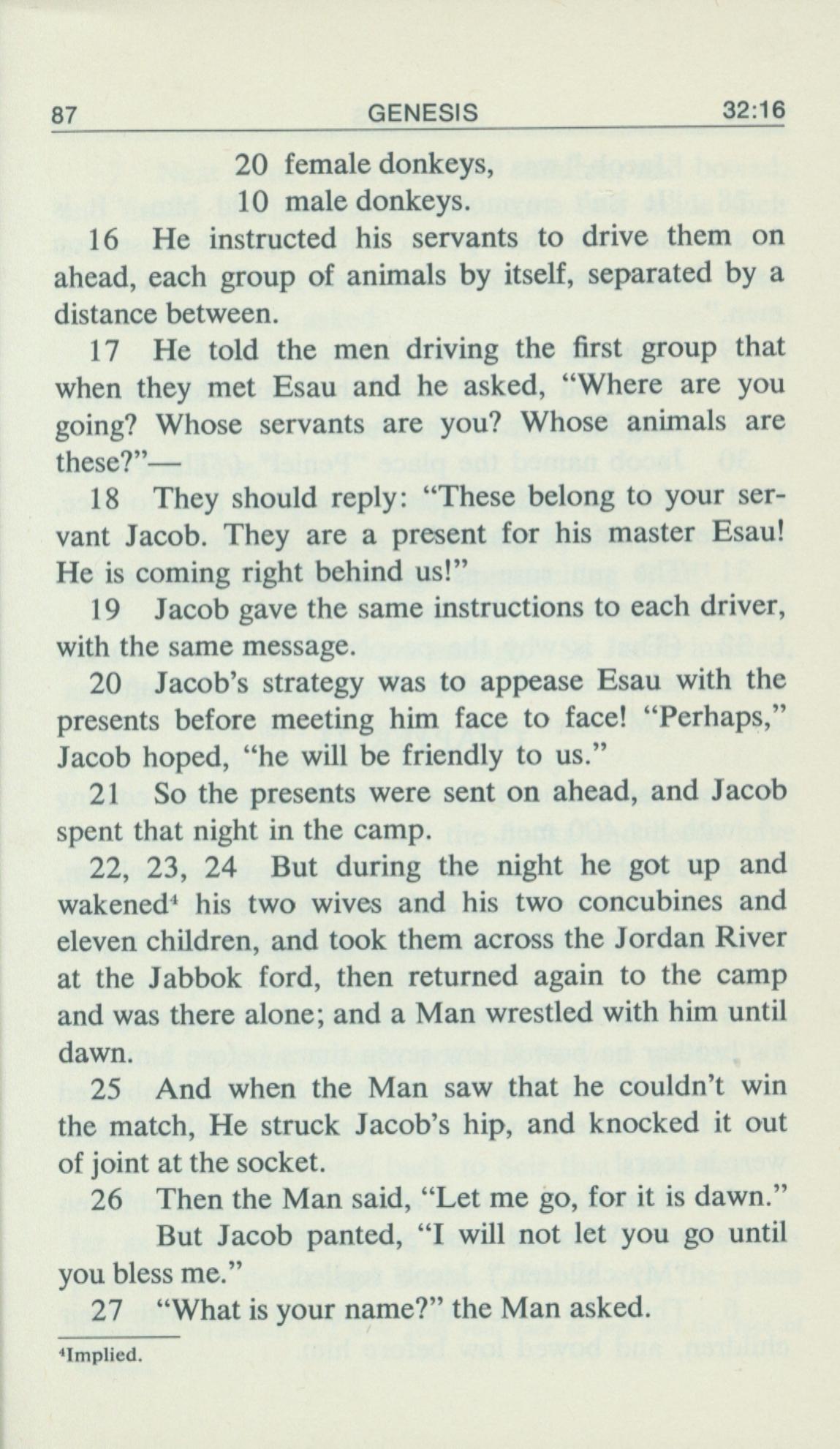 1969年Living Books of Moses 創世記 32 章 16 節到 32 章 27 節