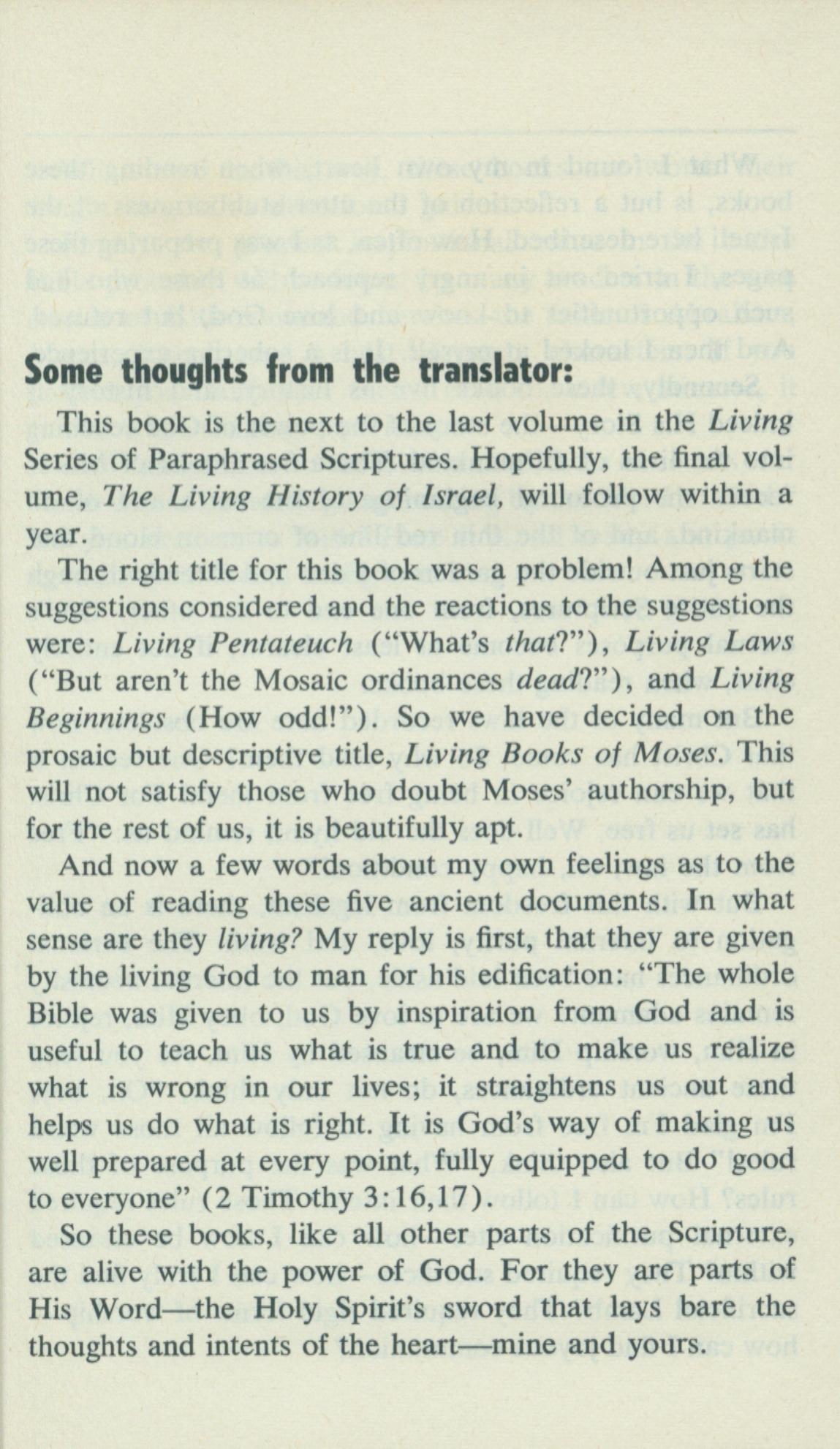 1969年Living Books of Moses 封面 0 章 10 節到 0 章 10 節