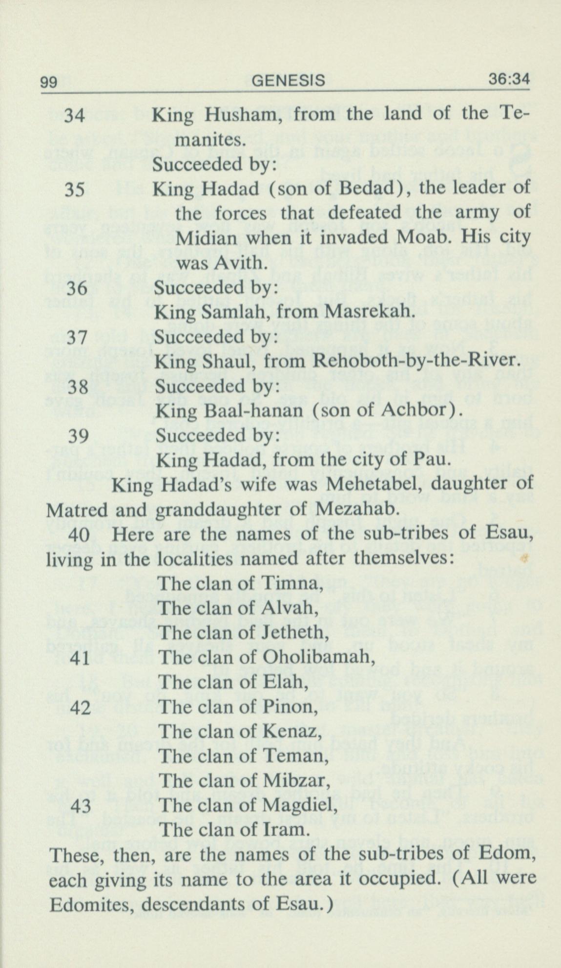 1969年Living Books of Moses 創世記 36 章 34 節到 36 章 43 節