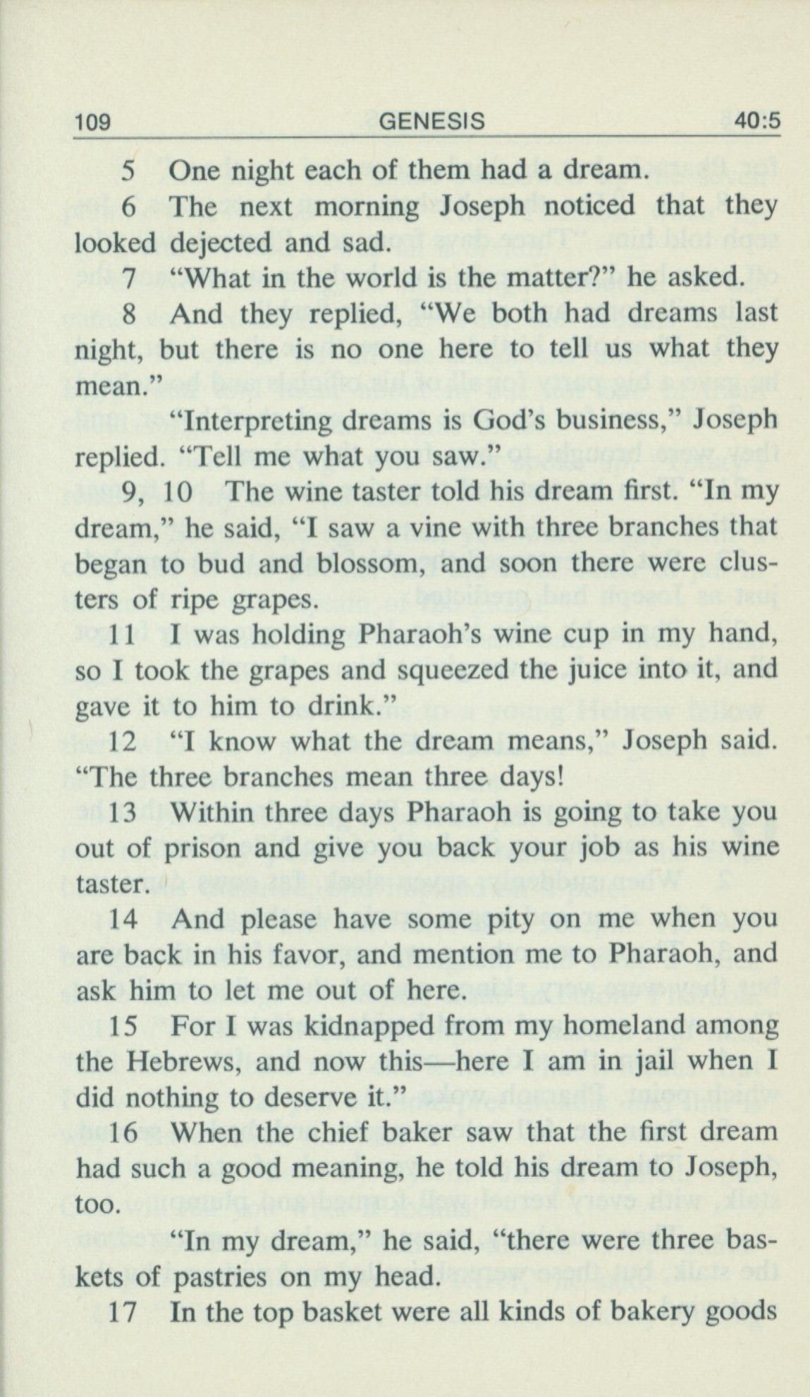 1969年Living Books of Moses 創世記 40 章 5 節到 40 章 17 節