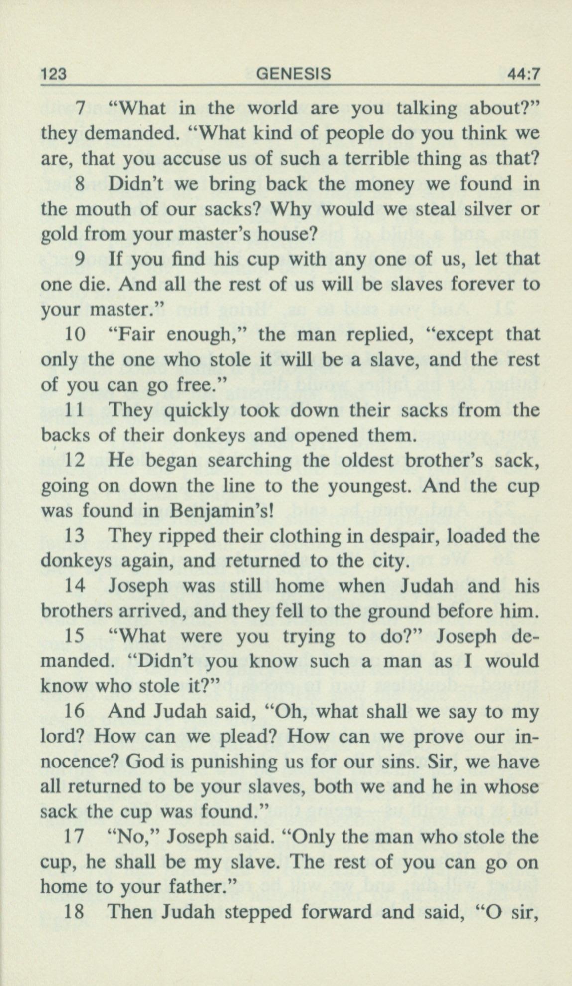 1969年Living Books of Moses 創世記 44 章 7 節到 44 章 18 節