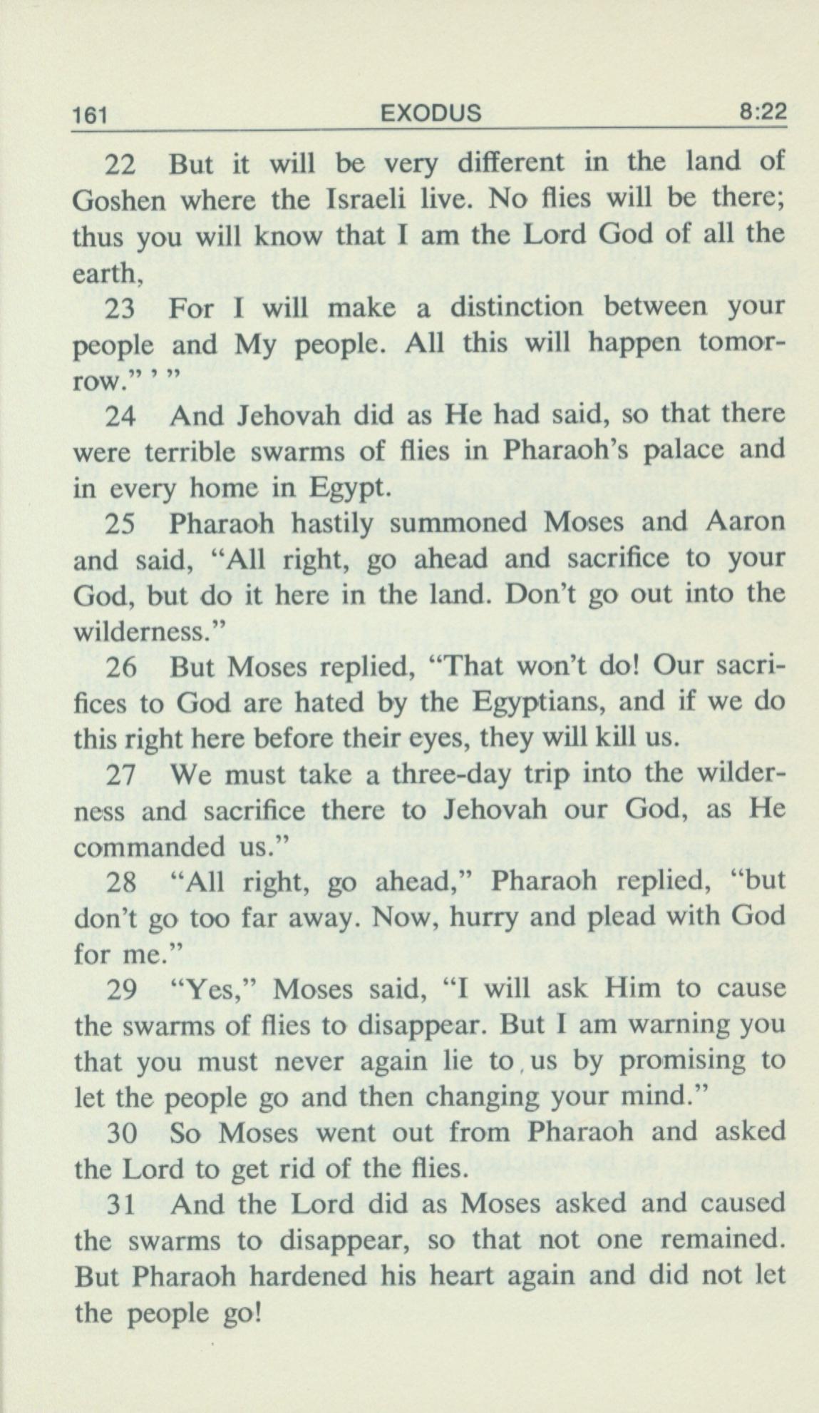 1969年Living Books of Moses 出埃及記 8 章 22 節到 8 章 31 節