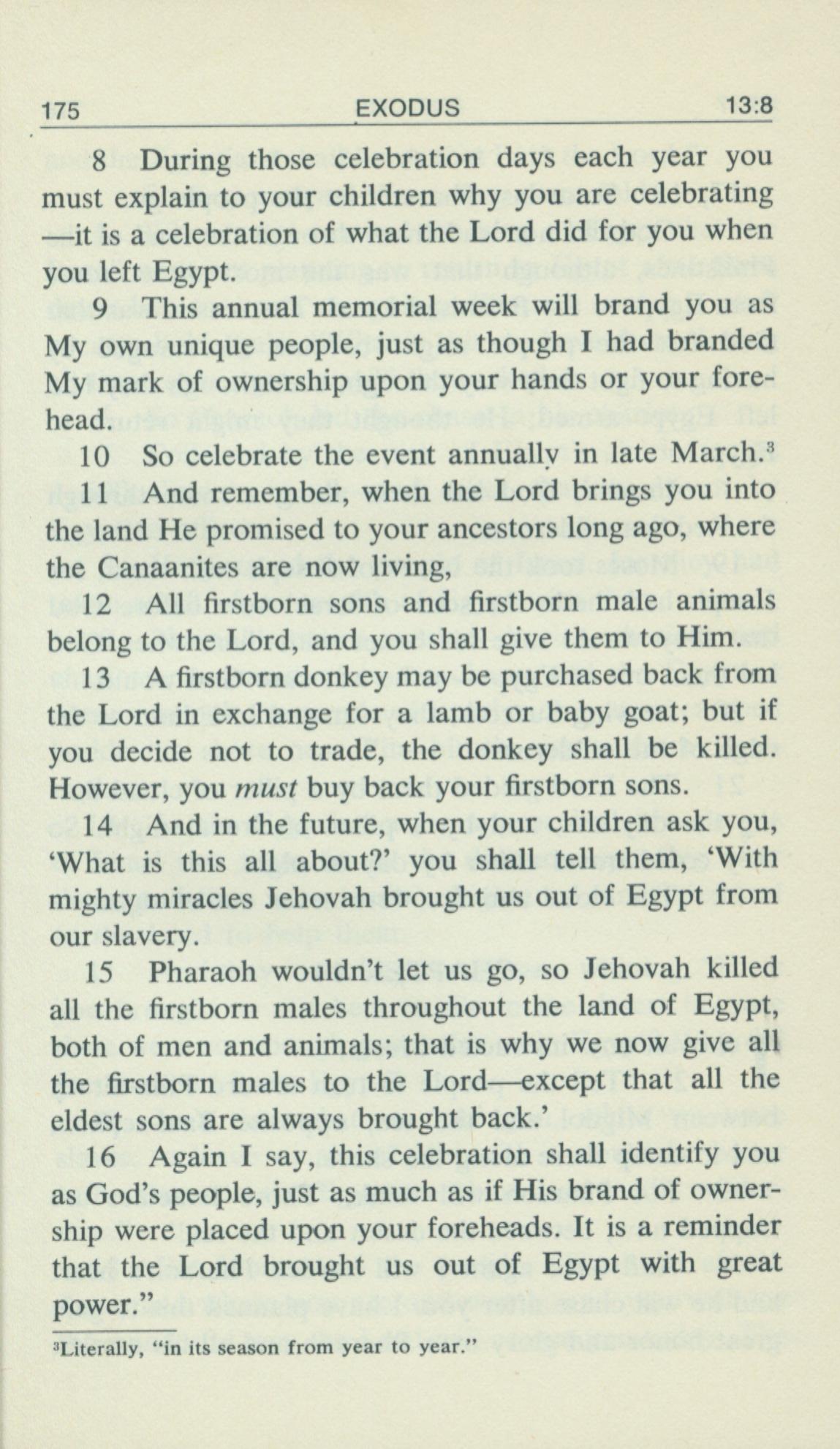 1969年Living Books of Moses 出埃及記 13 章 8 節到 13 章 16 節