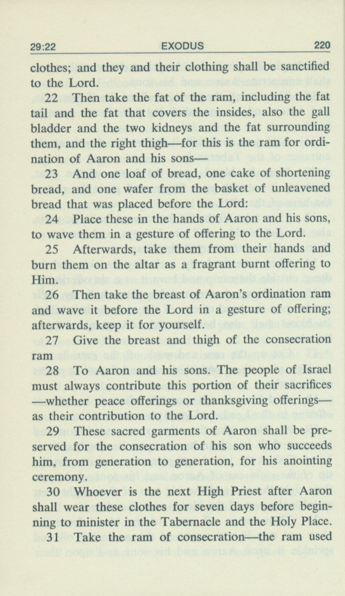 1969年Living Books of Moses 出埃及記 29 章 22 節到 29 章 31 節