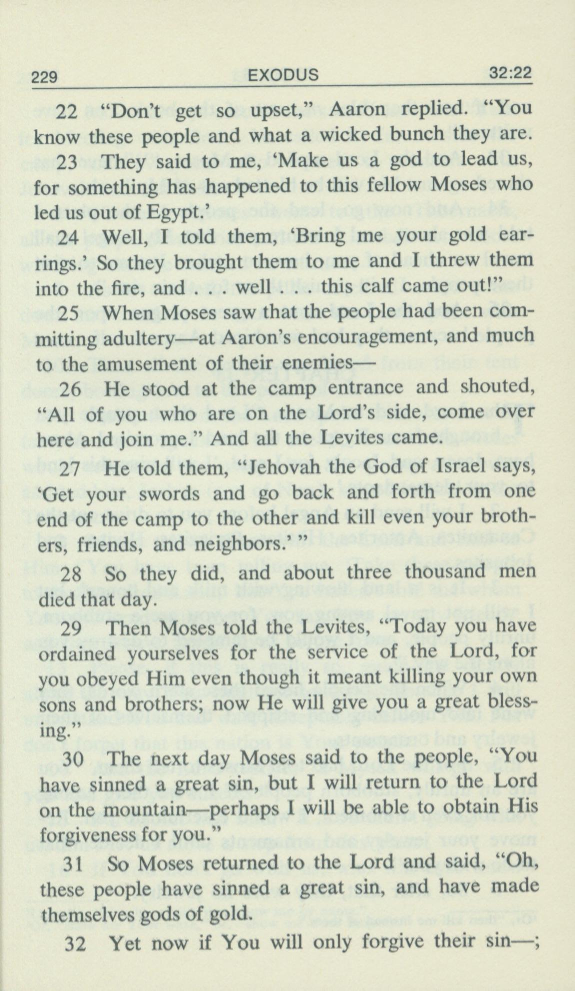 1969年Living Books of Moses 出埃及記 32 章 22 節到 32 章 32 節