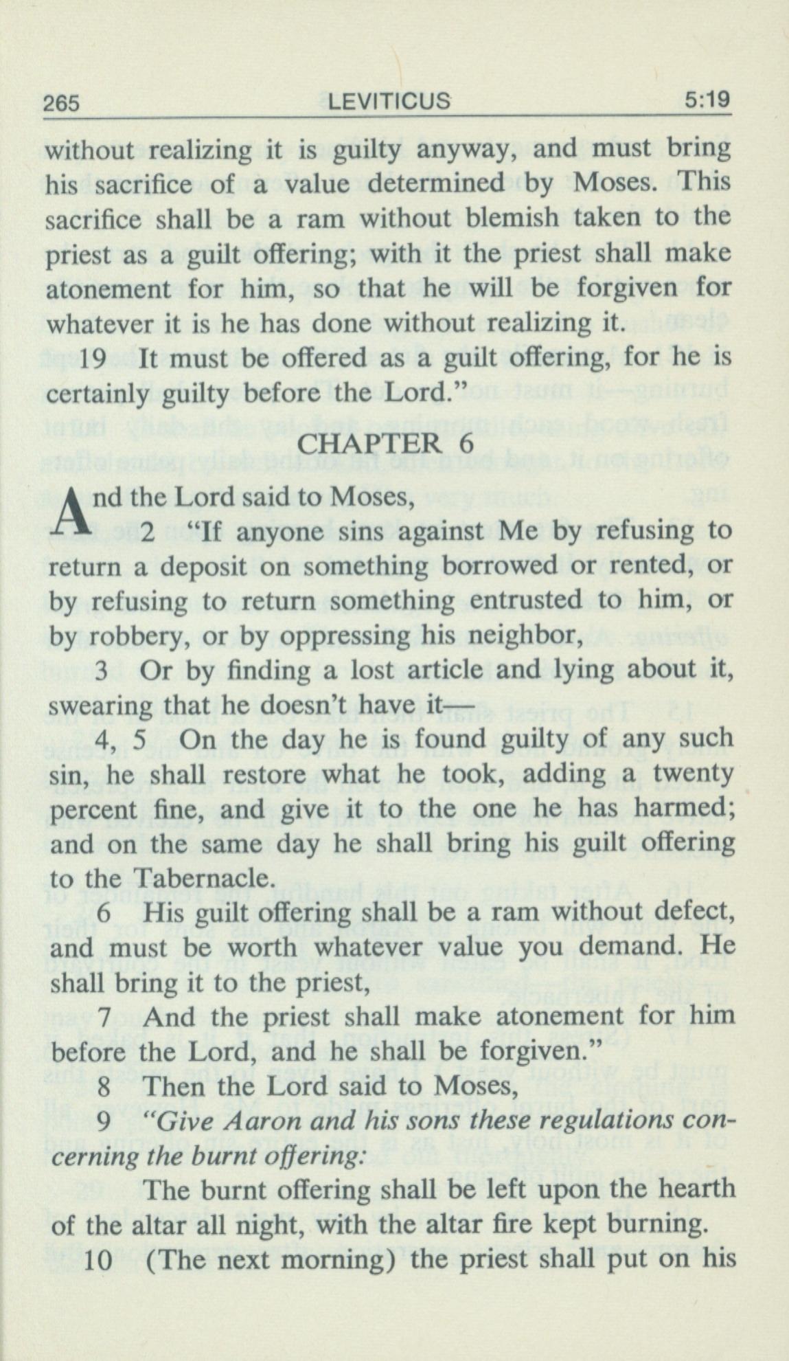 1969年Living Books of Moses 利未記 5 章 18 節到 6 章 10 節