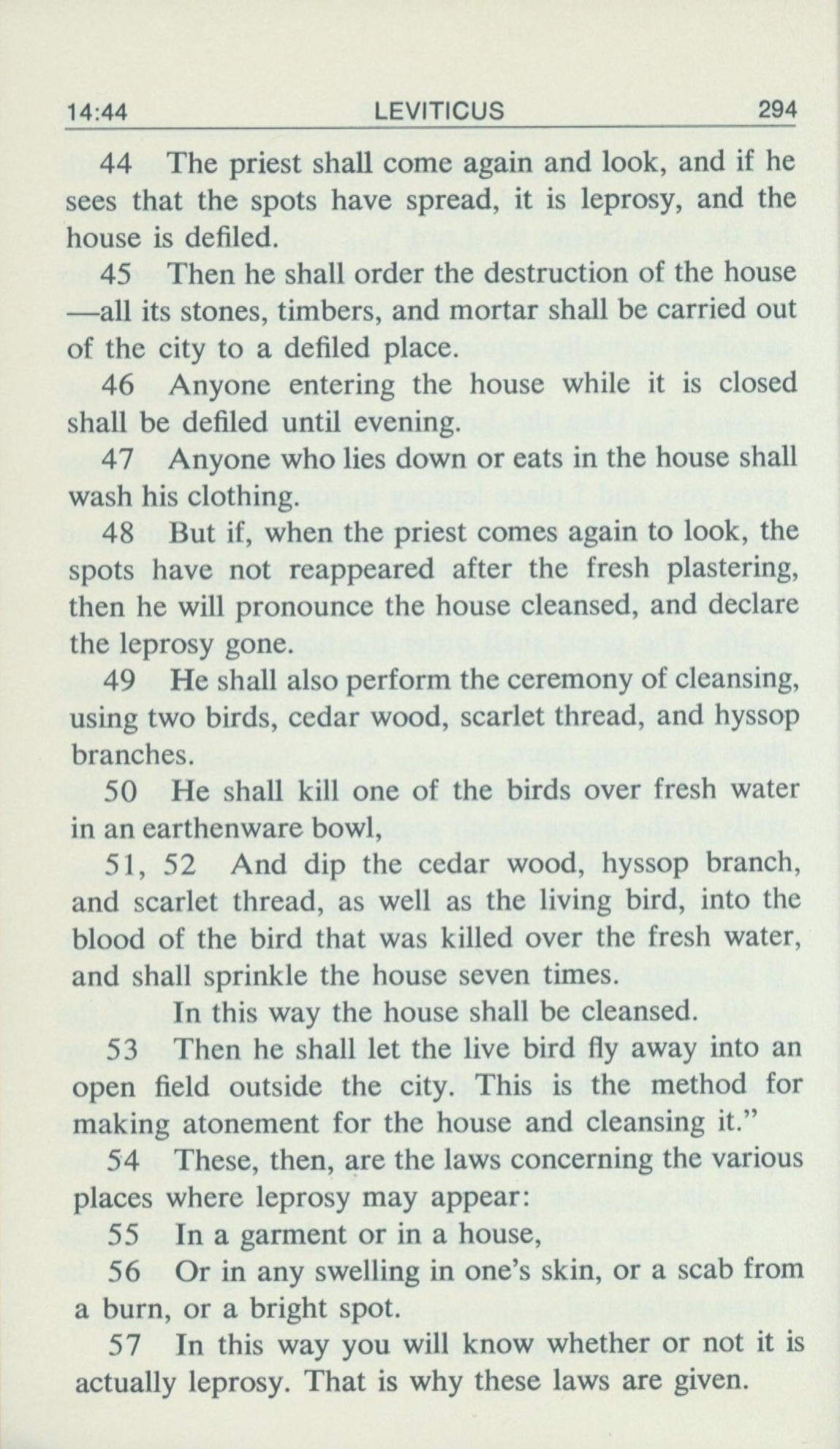 1969年Living Books of Moses 利未記 14 章 44 節到 14 章 57 節